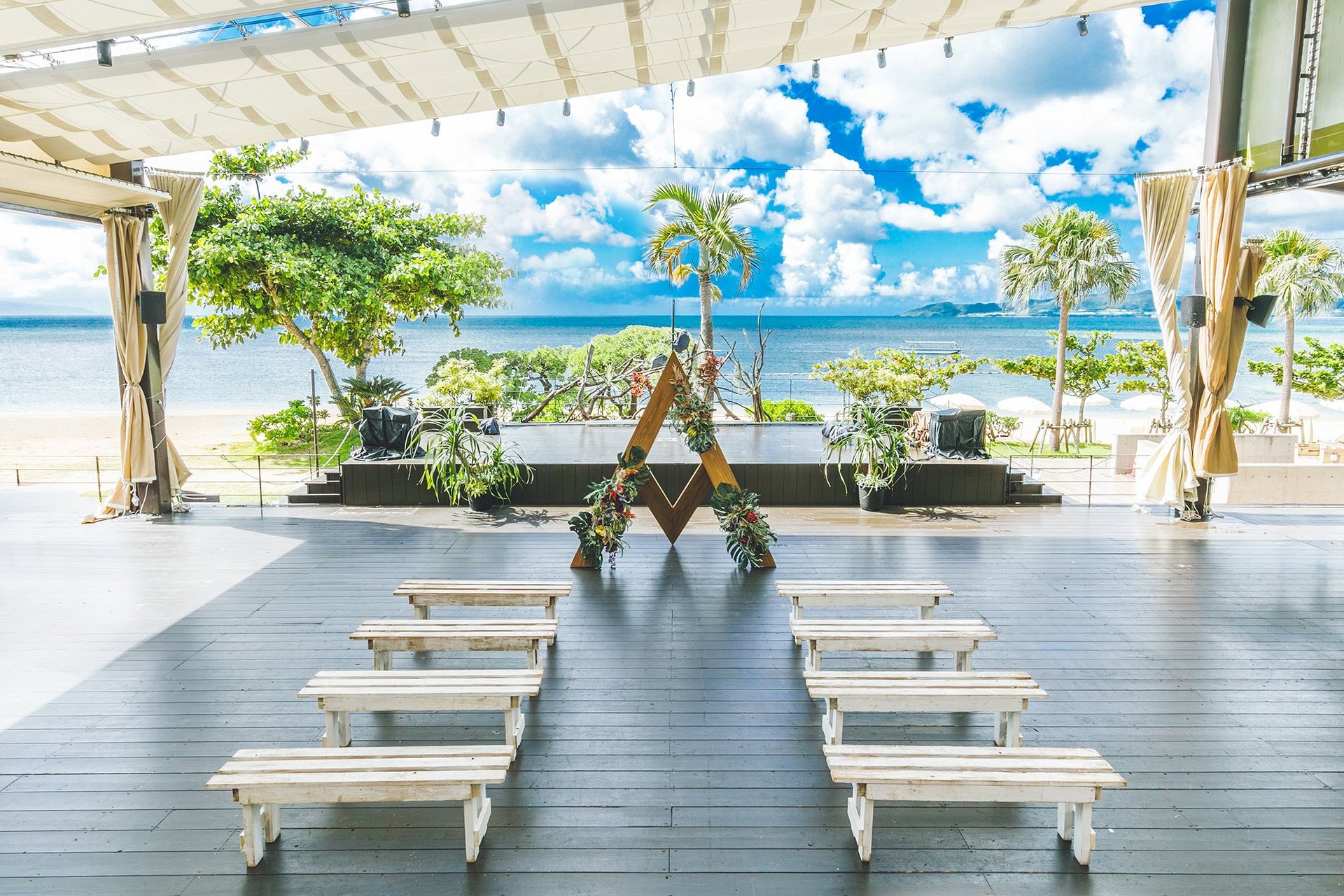 フサキビーチに面した屋外デッキ「カーチバイ」が、新たなウエディング会場として登場しました。