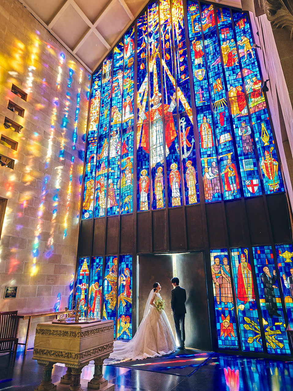 ひとつひとつに大切な物語と深い祈りが込められたステンドグラスは、ハワイのピュアな太陽に包まれ、オルガンの音色と溶け合い、ここで結ばれるおふたりの幸せな未来に祝福の光を投げかけます。