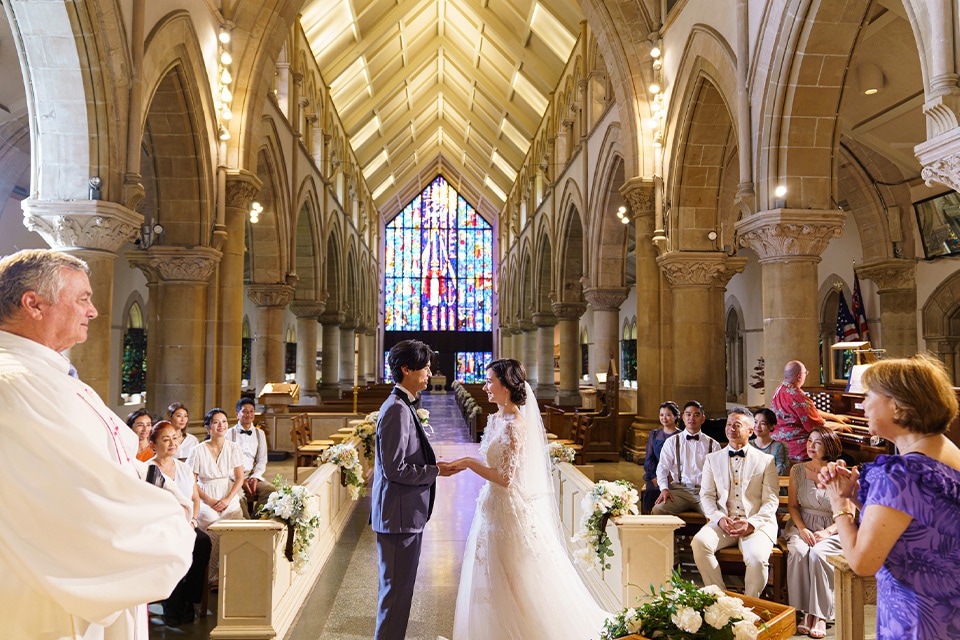 また、カメハメハ4世はヨーロッパの寺院でのロイヤルセレモニーをここに再現したかったのかもしれないとも云われています。カメハメハ4世のヨーロッパのロイヤルセレモニーへの感銘の念は現在もこの教会に息づき、ロイヤルウエディングを彷彿とさせる厳粛な挙式が執り行われています。