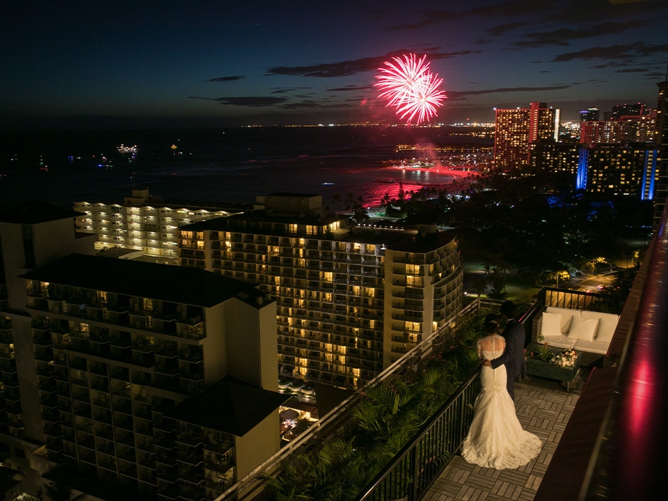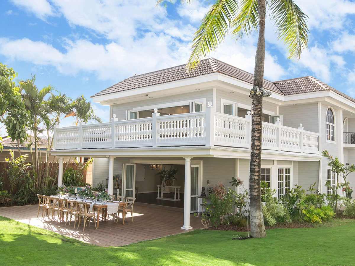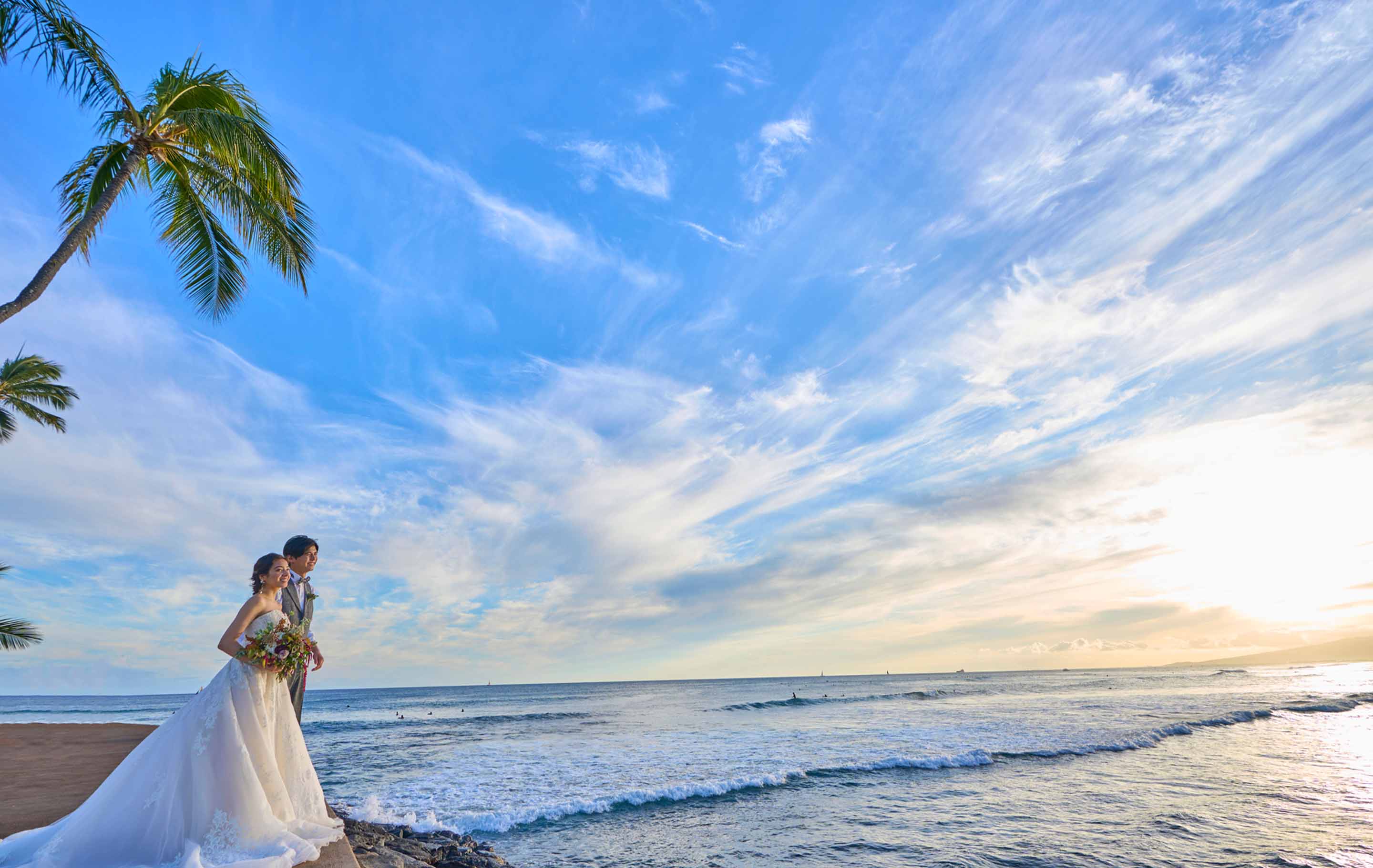 大聖堂での挙式後は青い海と空に包まれて ハワイらしいパーティーを。