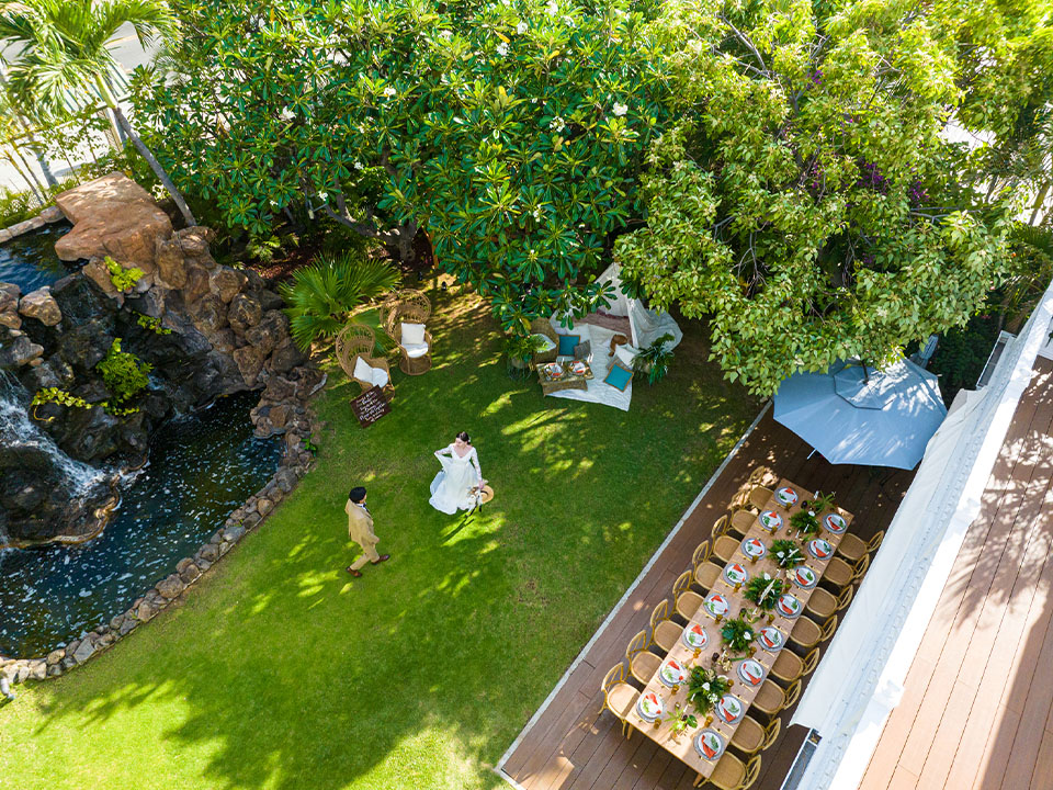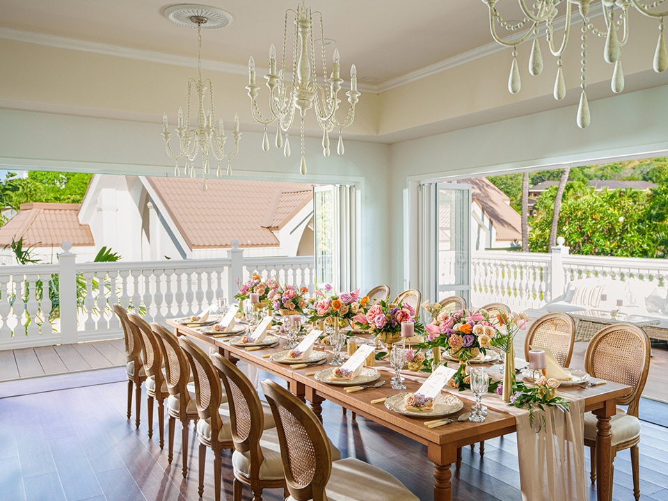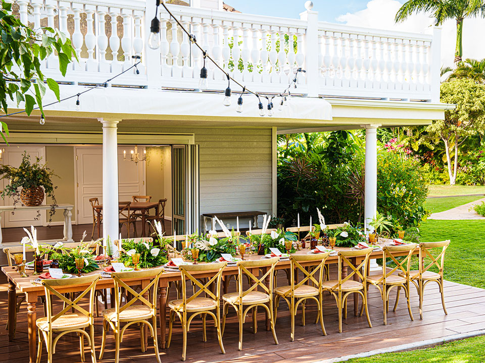 おふたりのお食事から大切なゲストをお招きしてのパーティーまで。多彩なスタイルからお選びいただける会場・レセプションをご用意。挙式後はハワイならではのロケーションとお料理で、ゆっくりと楽しい時間をお過ごしください。