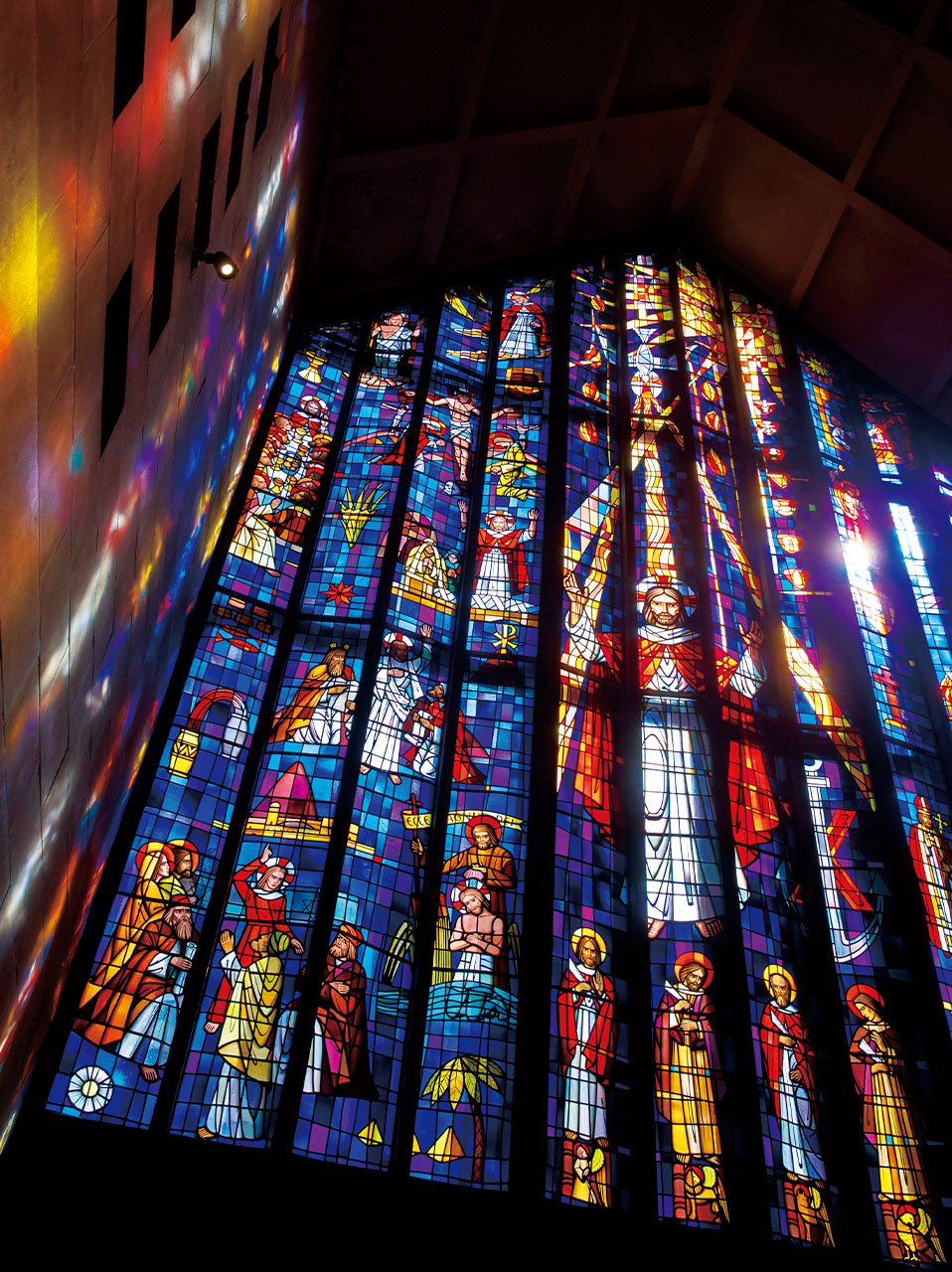 遥かなる歴史が描き出された壮大なステンドグラス。