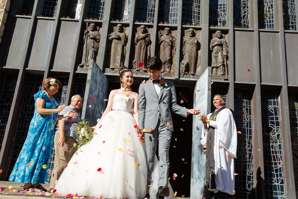 ひとつひとつに大切な物語と深い祈りが込められたステンドグラスは、ハワイのピュアな太陽に包まれ、オルガンの音色と溶け合い、ここで結ばれるおふたりの幸せな未来に祝福の光を投げかけます。