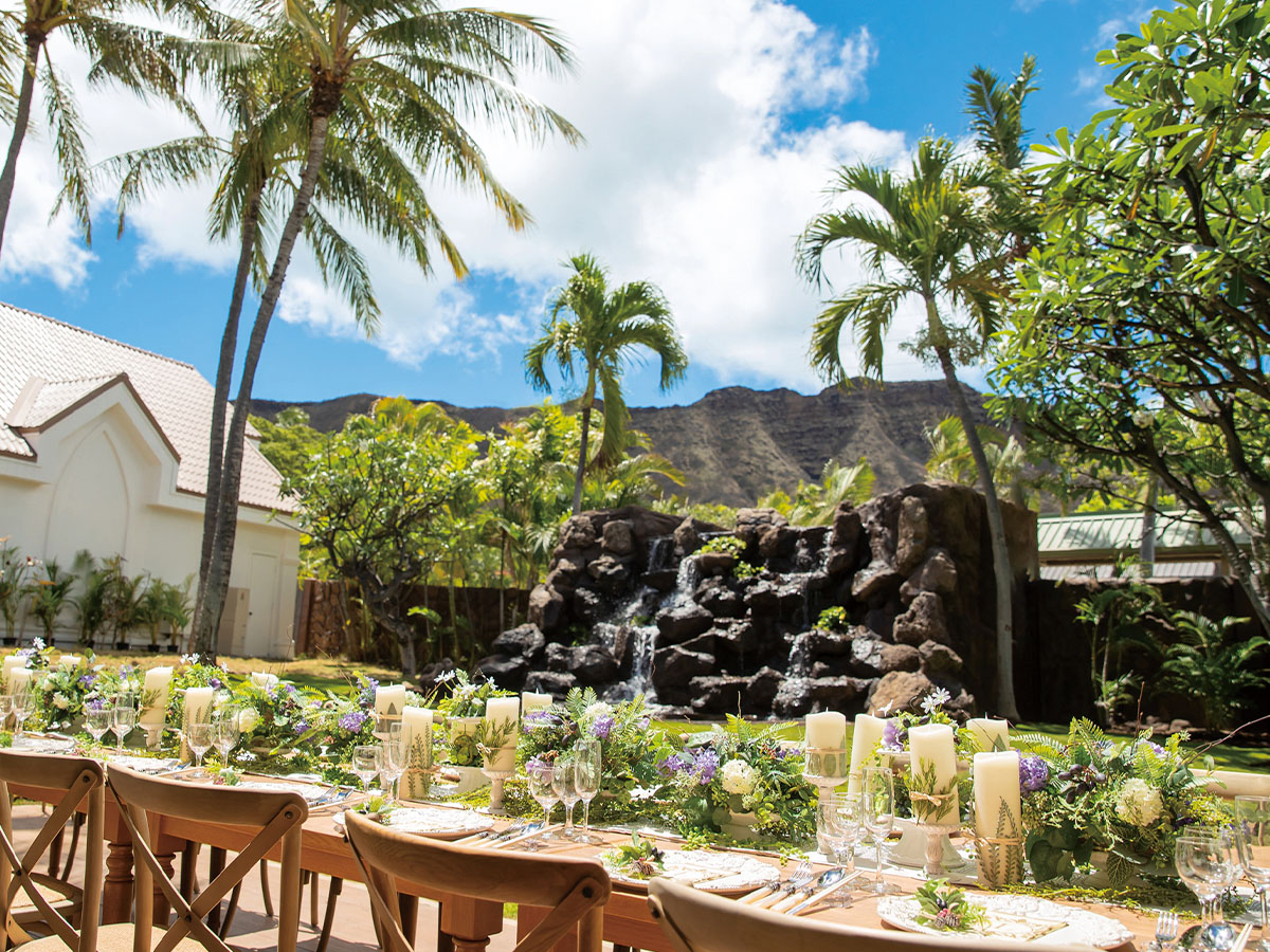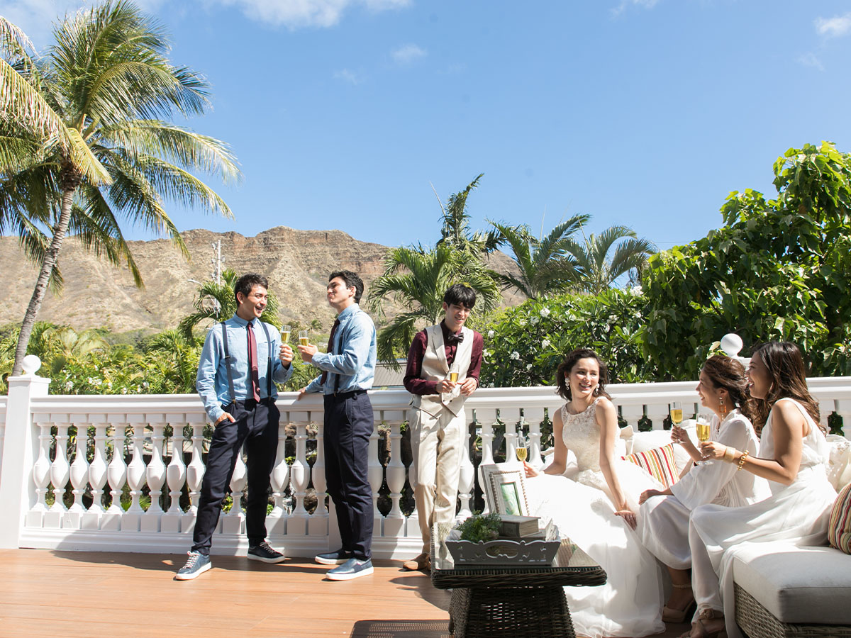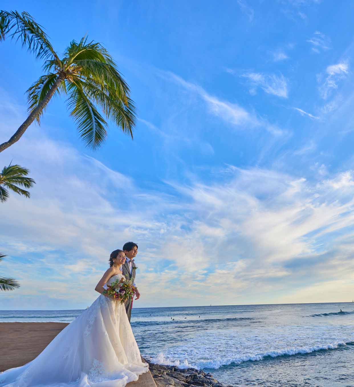 大聖堂での挙式後は青い海と空に包まれて ハワイらしいパーティーを。