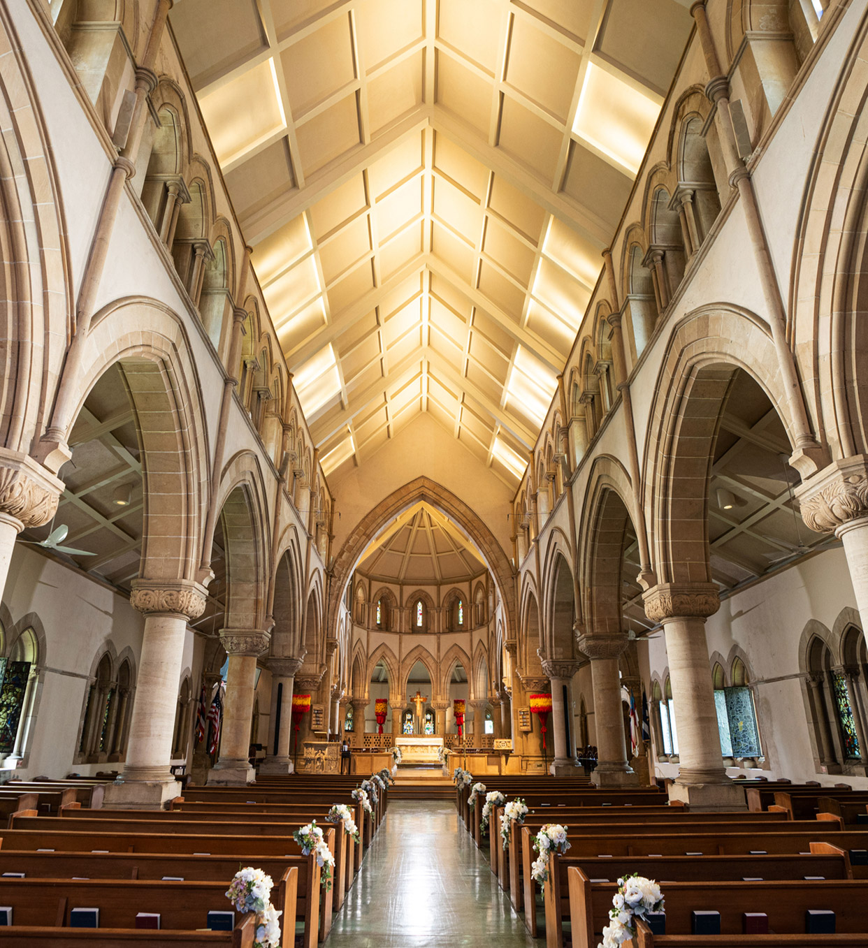 ハワイ・オアフ島で時を越えて人々に愛され続けるセント・アンドリュース大聖堂は、イギリス国教会とハワイ王朝の歴史を象徴する大聖堂。ハワイ最大級の規模を誇る総石造りの建築やパイプオルガン、エントランス一面のステンドグラスは、建造物としてもその価値が広く認められています。