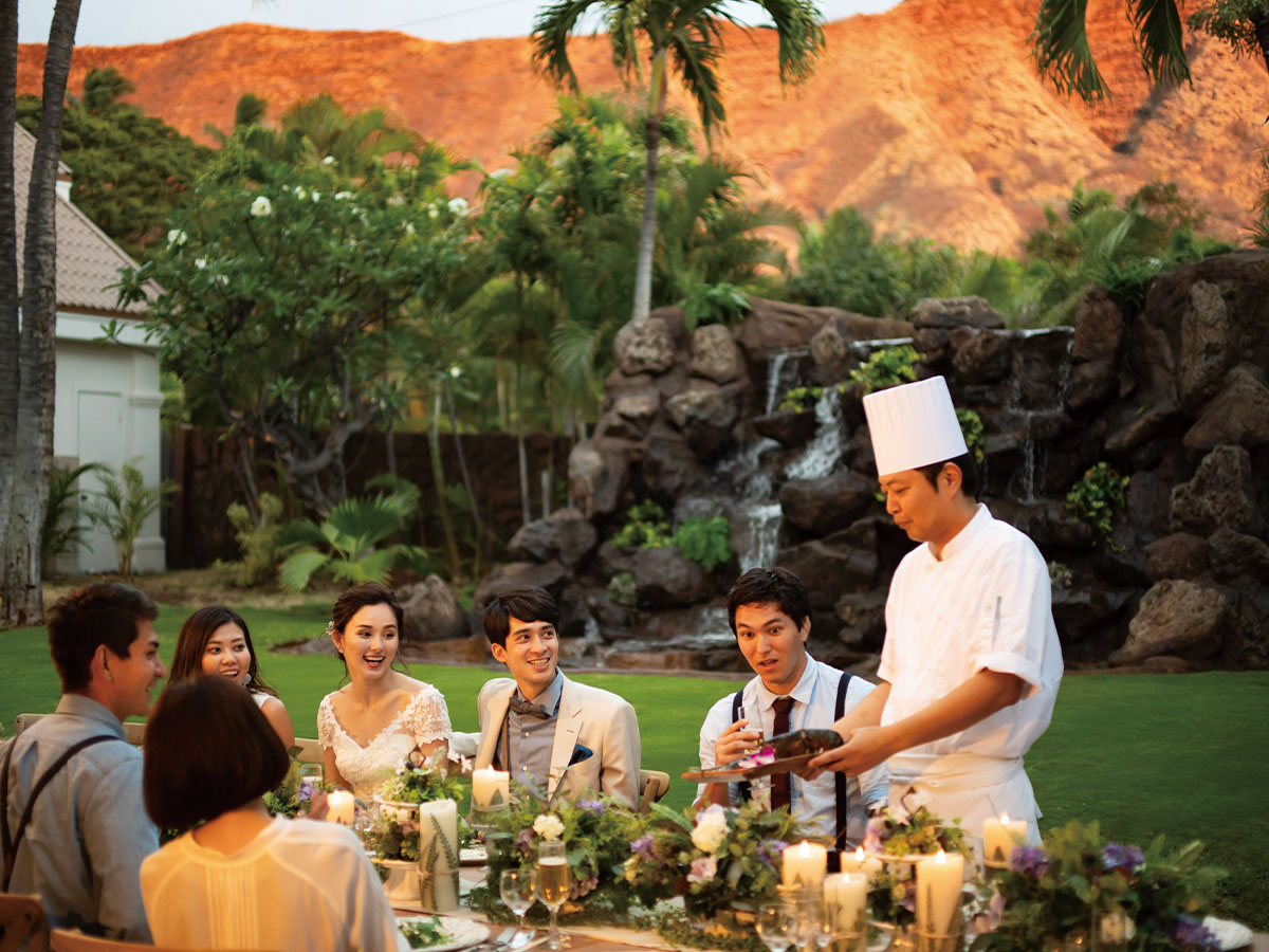 おふたりのお食事から大切なゲストをお招きしてのパーティーまで。多彩なスタイルからお選びいただける会場・レセプションをご用意。挙式後はハワイならではのロケーションとお料理で、ゆっくりと楽しい時間をお過ごしください。