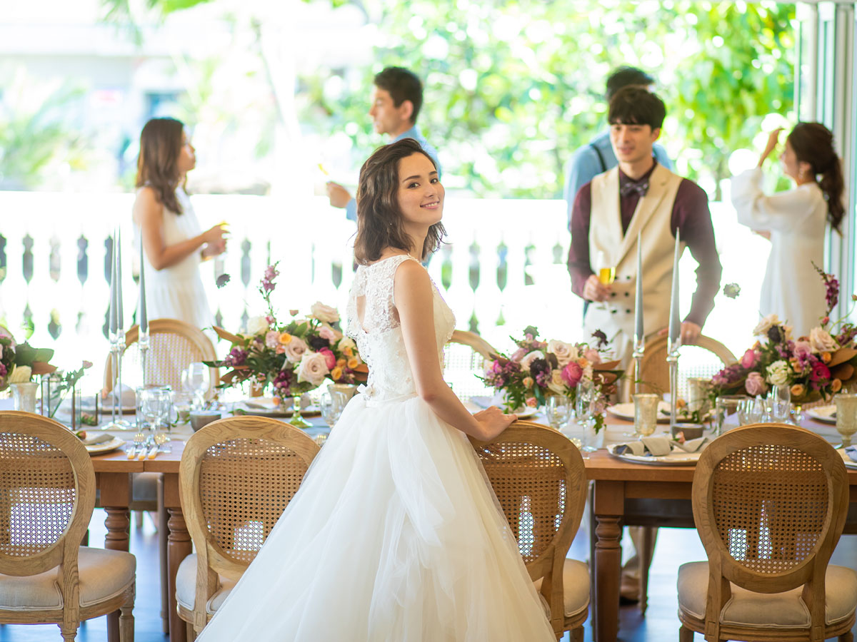 セレモニーのあとは緑豊かなガーデンへ移動して、シャンパントーストやケーキカットなど和やかなひとときを。ゲストの皆様からの祝福で、笑顔であふれる時間をお過ごしください。