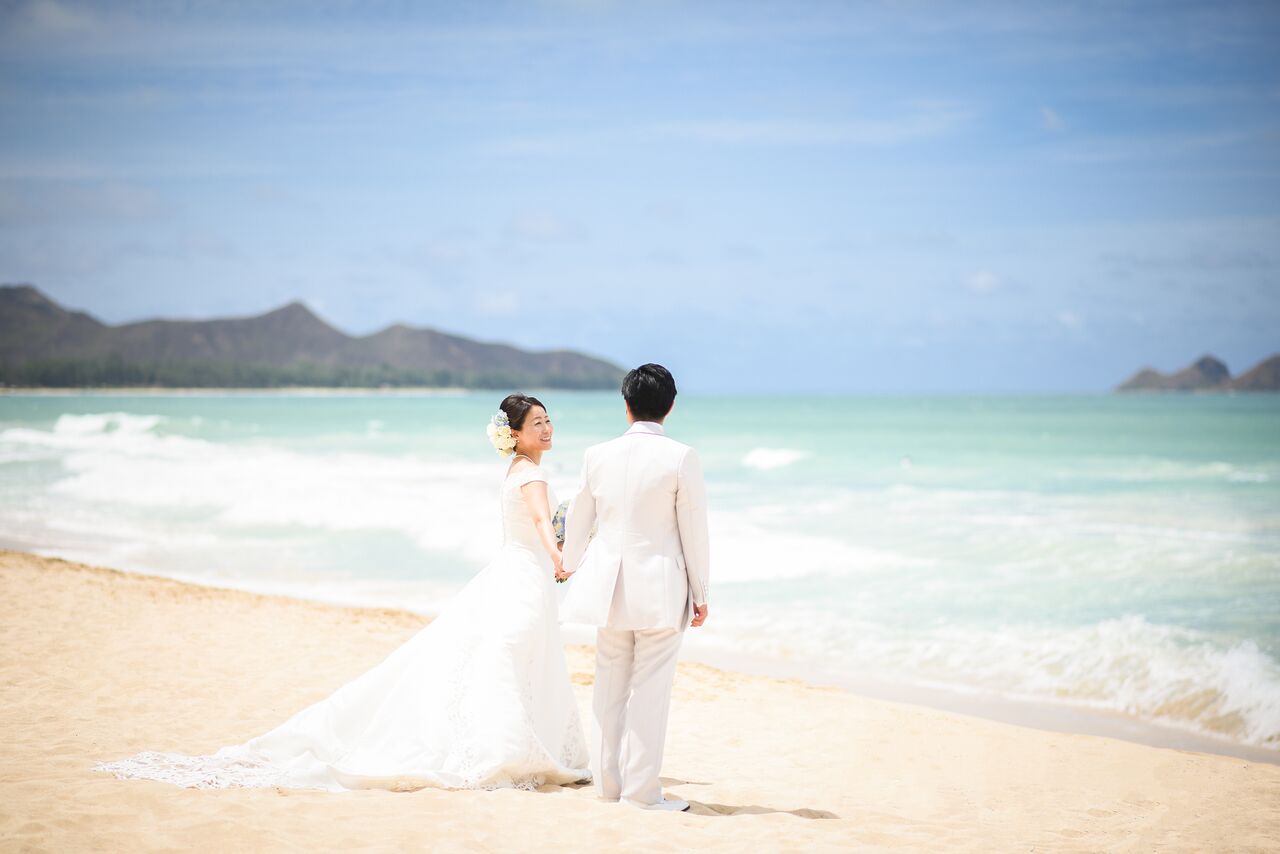 ご宿泊ホテルにてヘアメイク後、まずはワイマナロビーチにて写真撮影です。