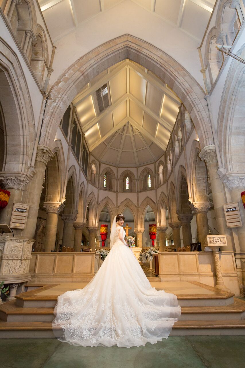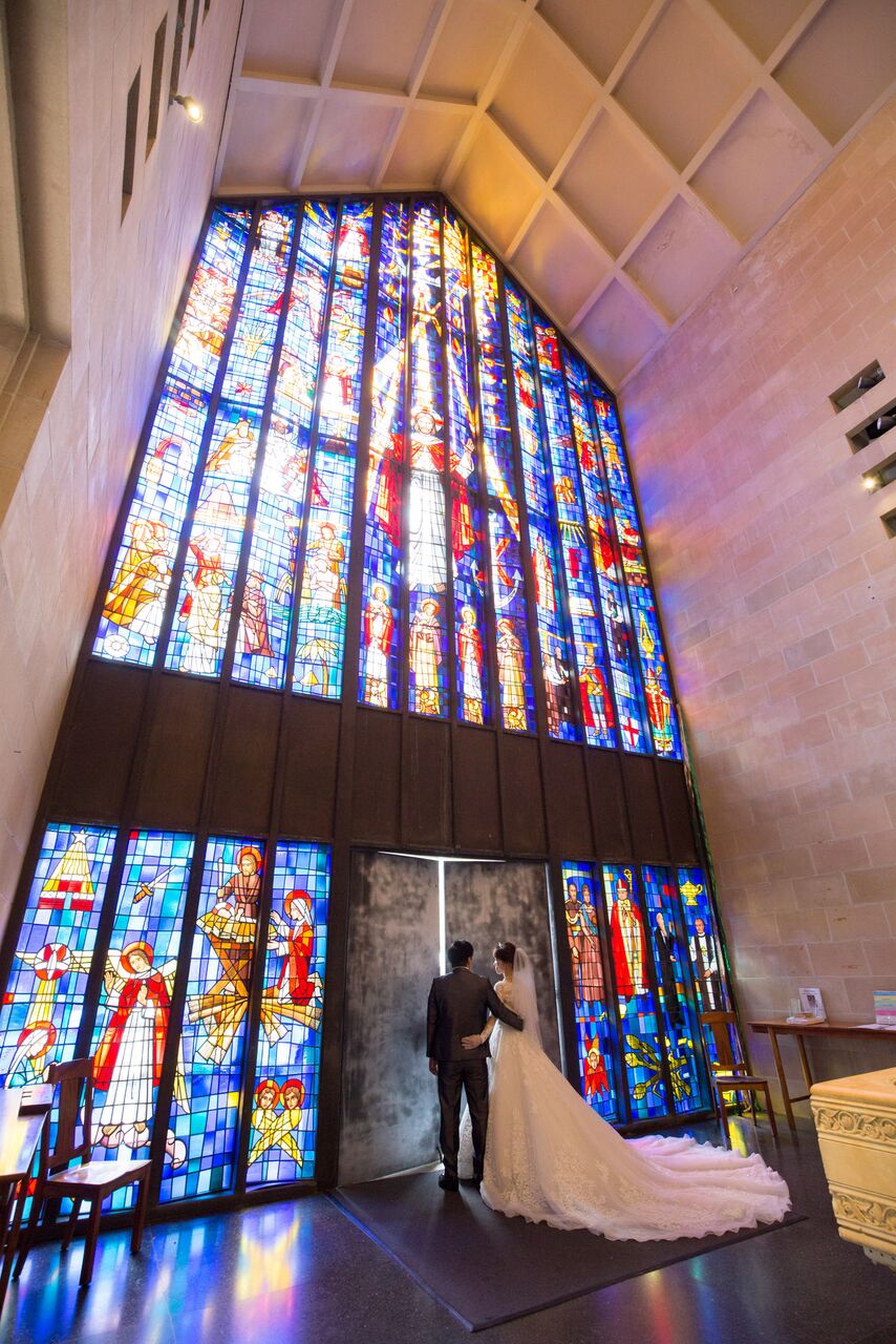 ステンドグラス前での撮影は大変人気で、花嫁様からリクエストを頂く事も多くございます!