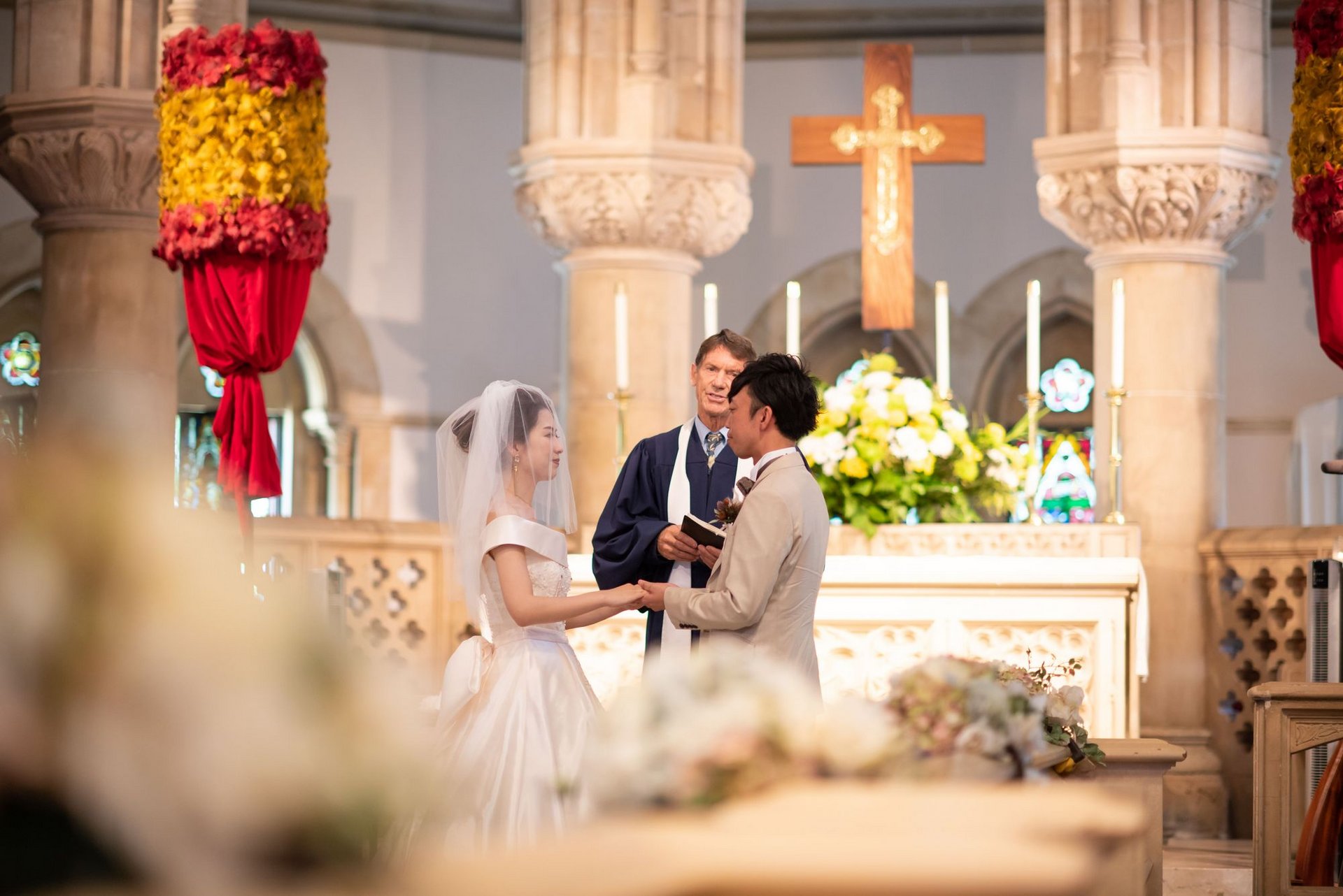 ハワイ「セントアンドリュース大聖堂」で挙式をお迎えになられました