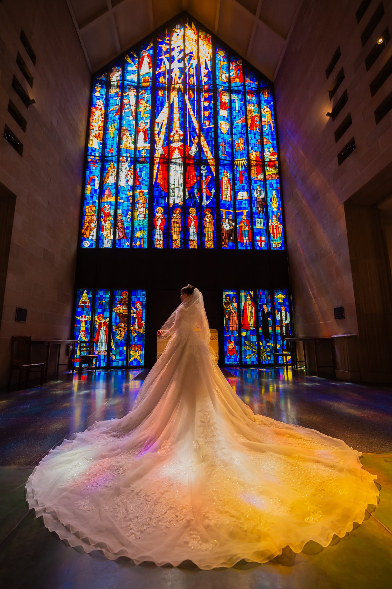 ステンドグラスの色鮮やかな光がお二人を出迎えてくれます♪