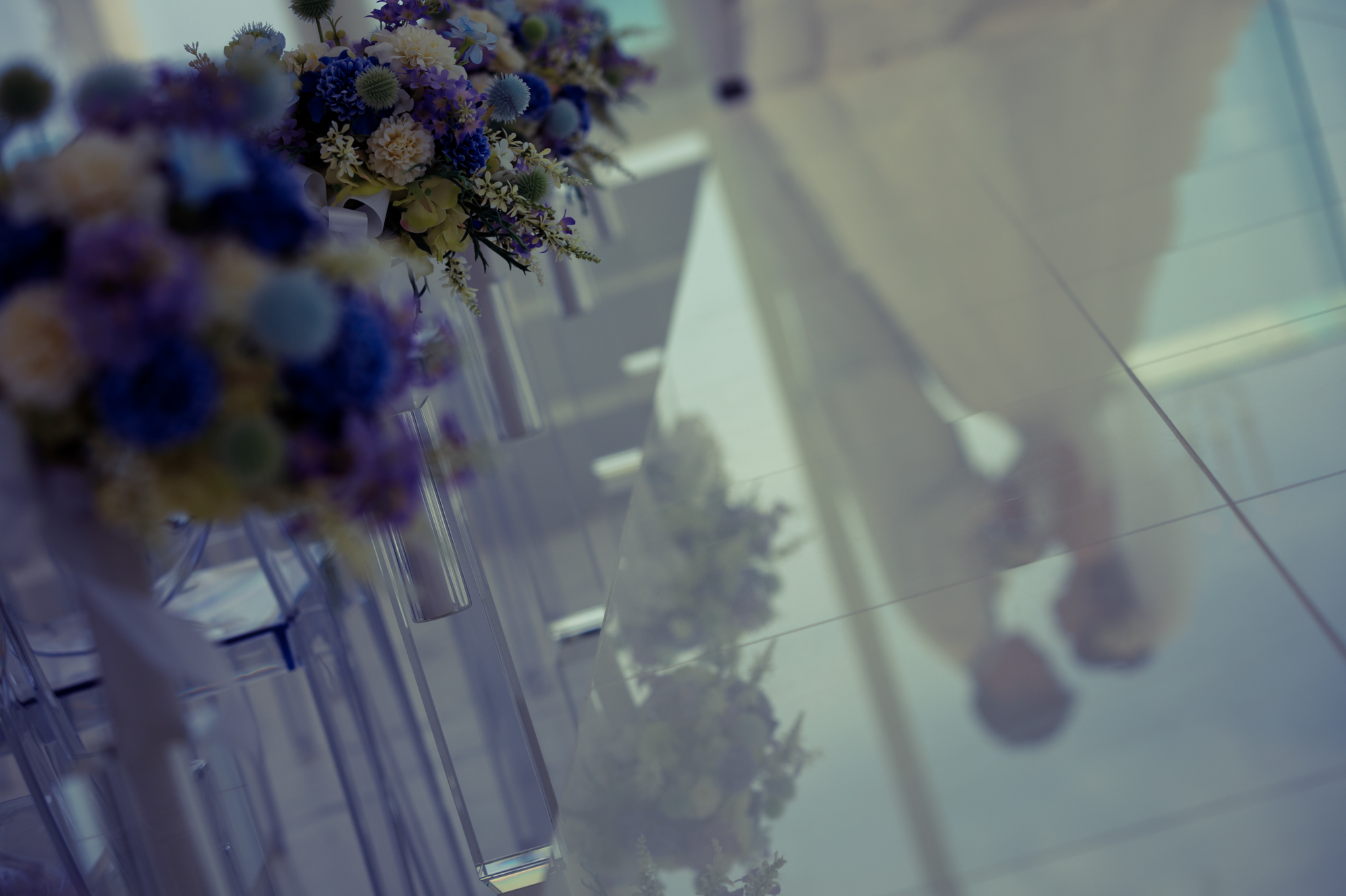 バージンロードには,お二人の美しい姿が映されており
