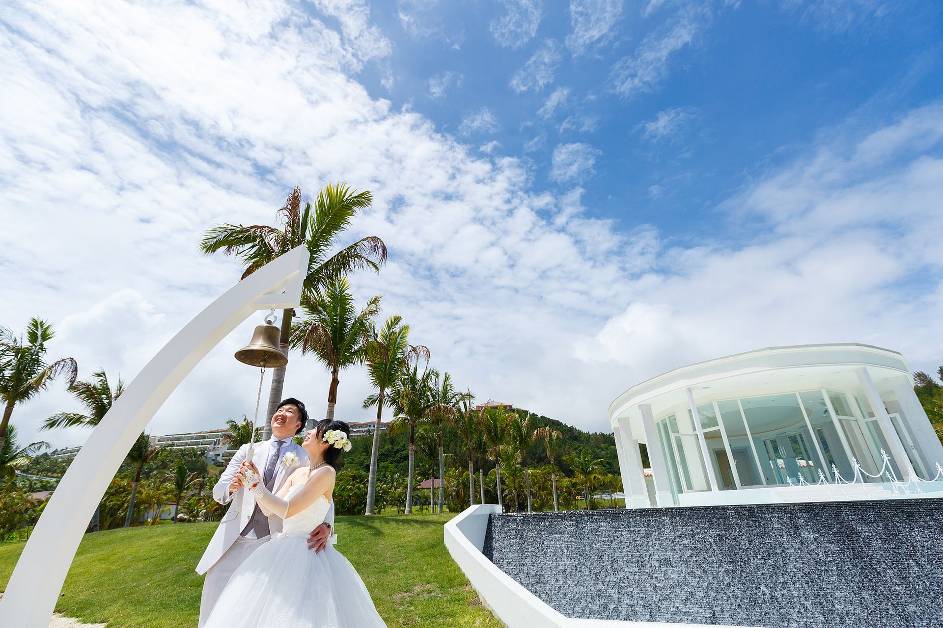 チャペルバックに南国感を感じながら、ウェディングベルを鳴らされました♪