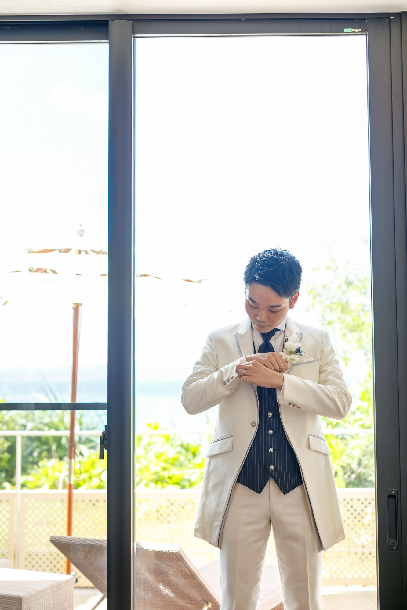 お二人のお支度が整い、ヴィラスイートにて挙式前の撮影をします。