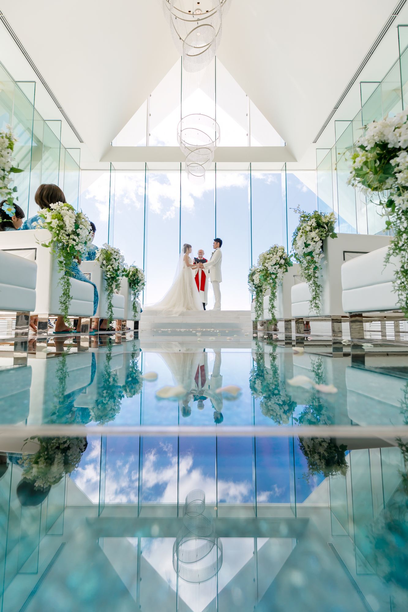 挙式ではアイネスオリジナルのトンボ玉の交換や未来宣言などがございます。