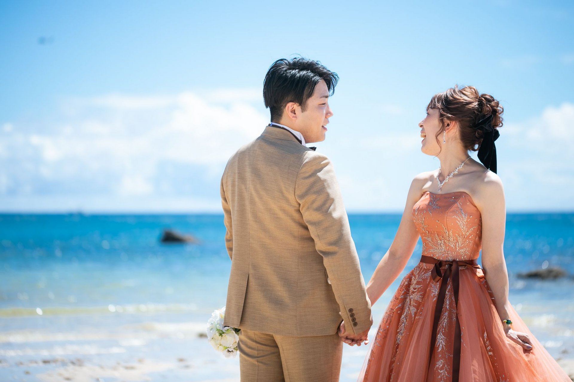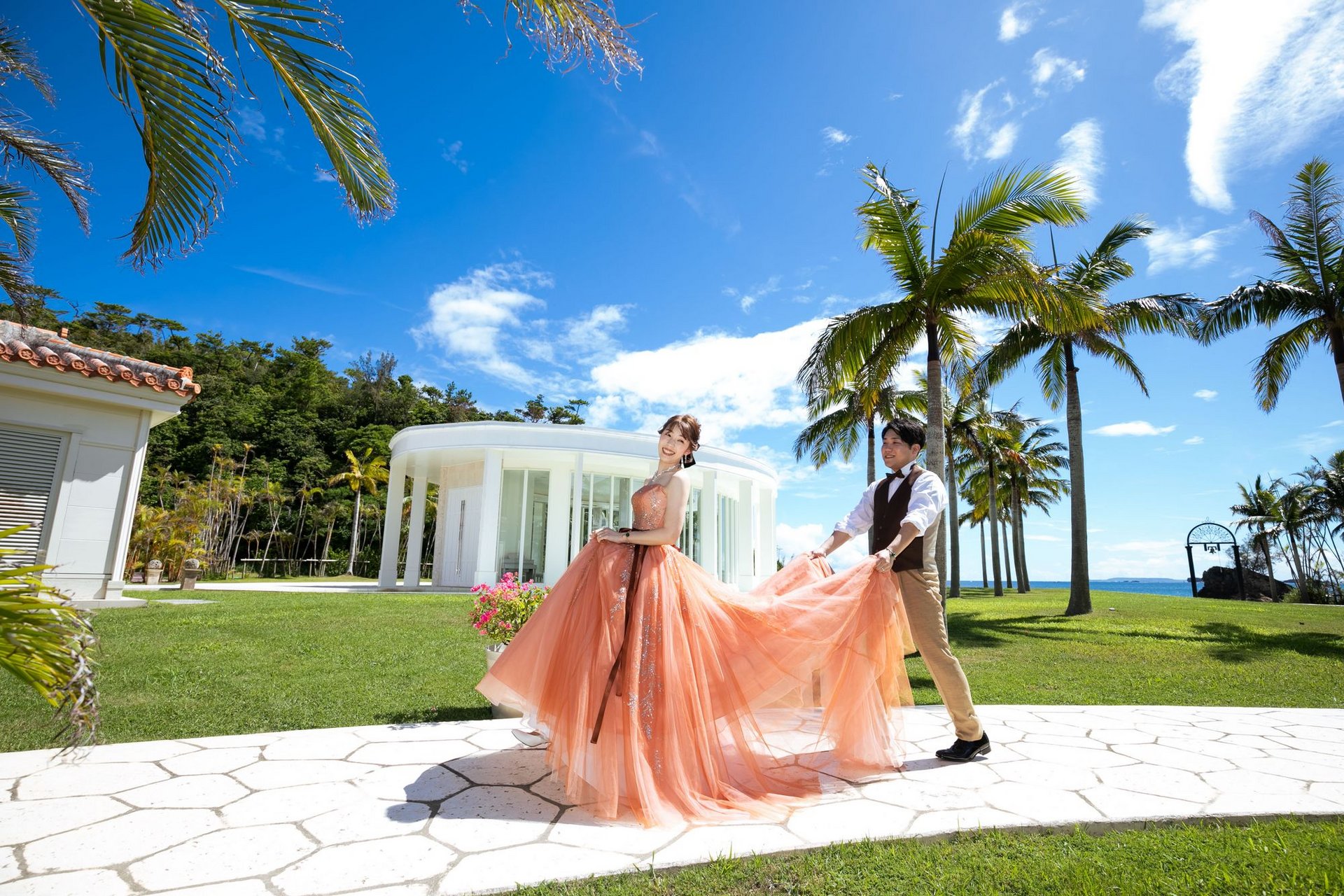 お天気にも恵まれ、テラコッタのカラードレスがより輝いて見えますね!