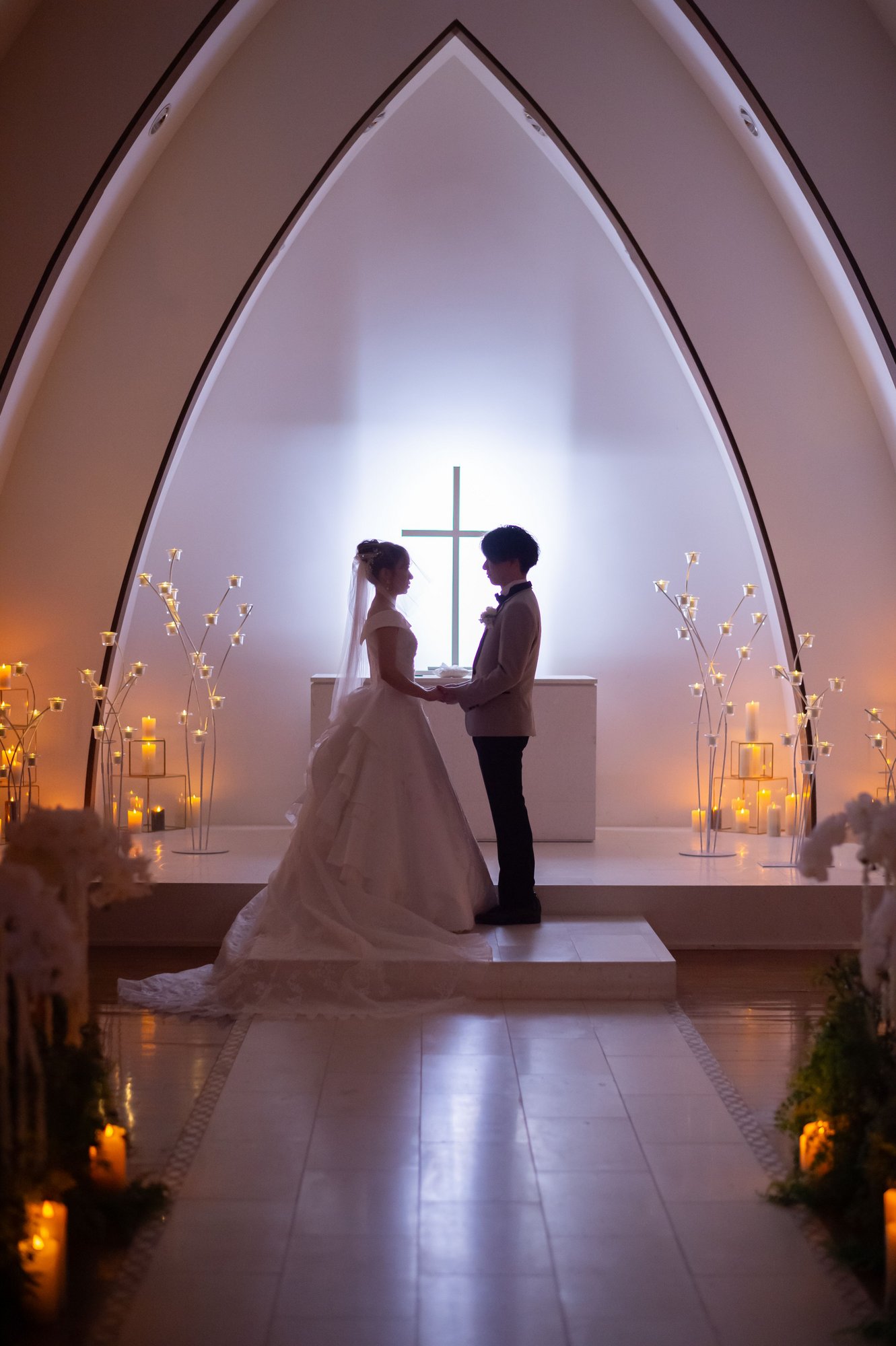 木のぬくもりを感じる温かい雰囲気のチャペルにて・・・