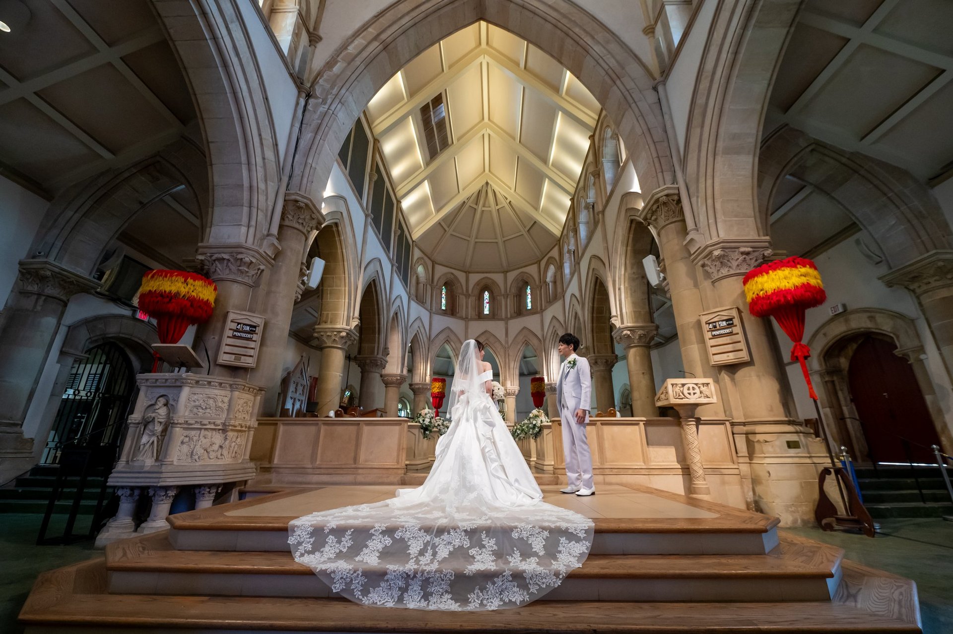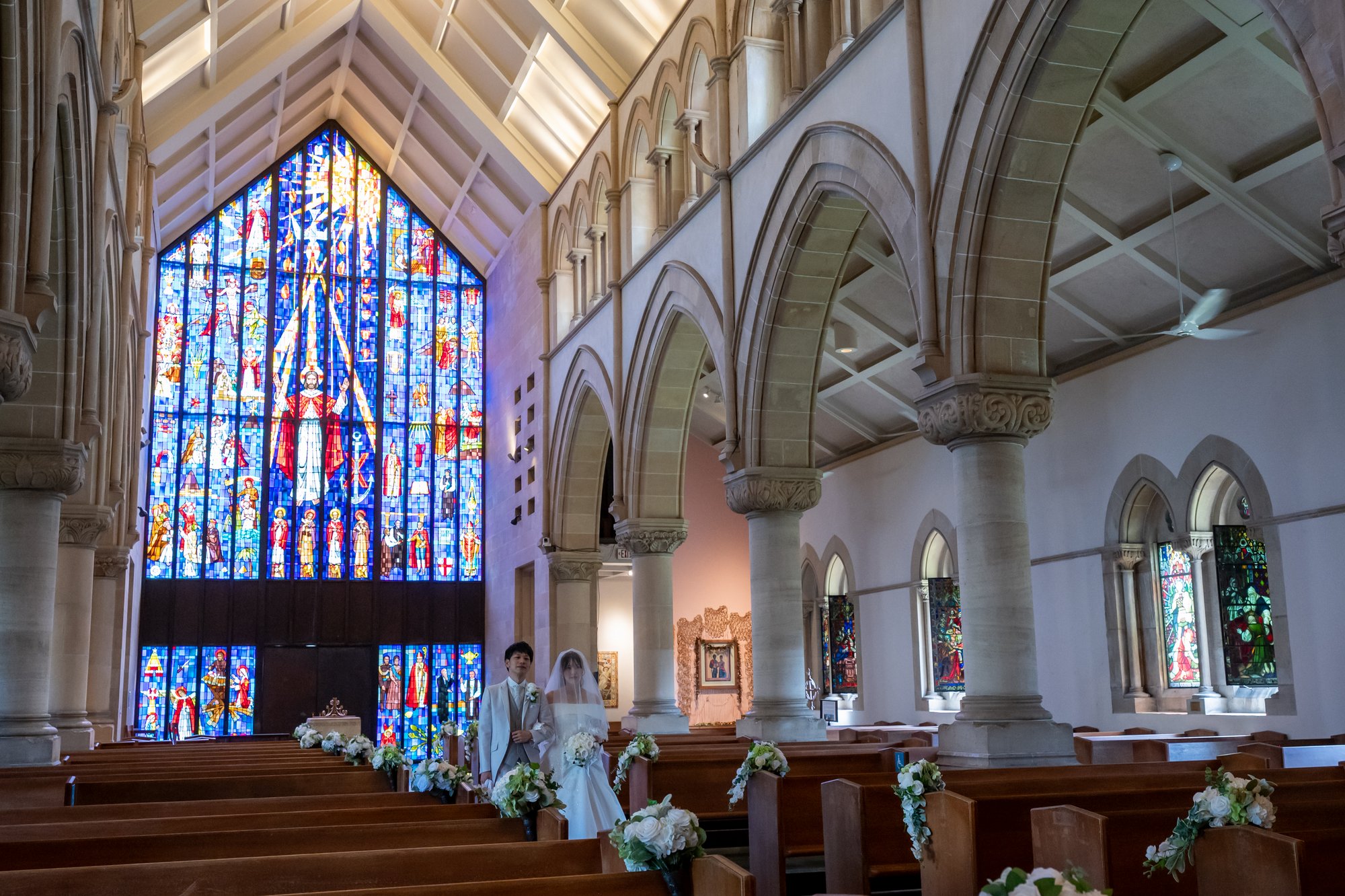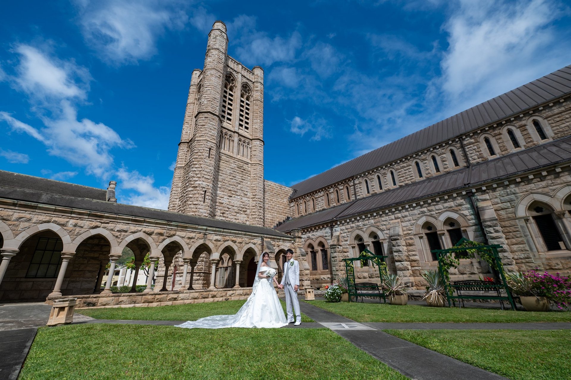 本日はハワイのセントアンドリュース大聖堂にてフォトウエディングをされた