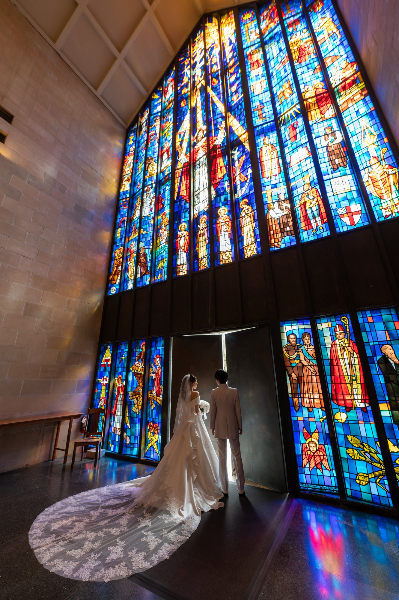 まずは幻想的なステンドグラスが輝く中での撮影‧₊˚✧