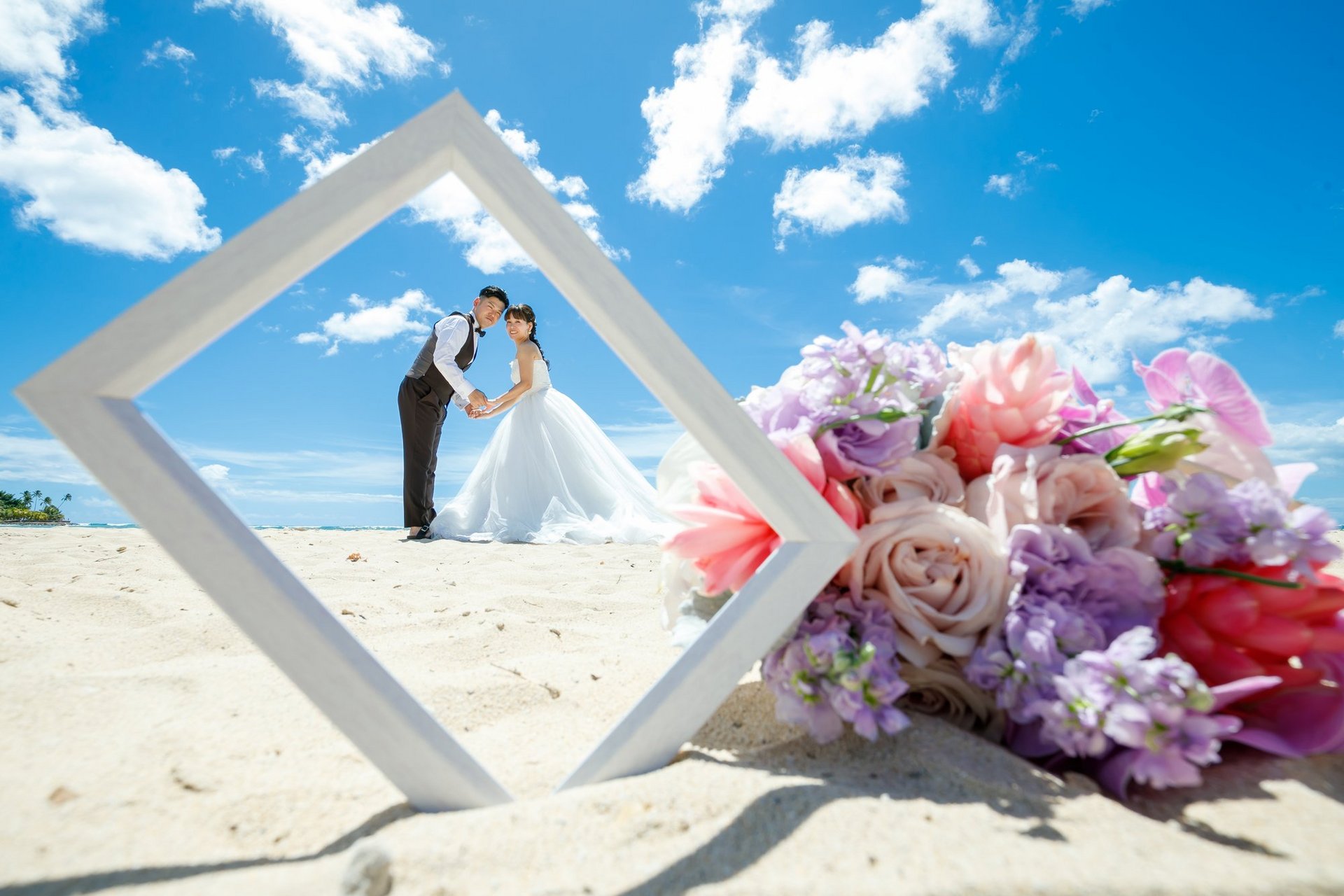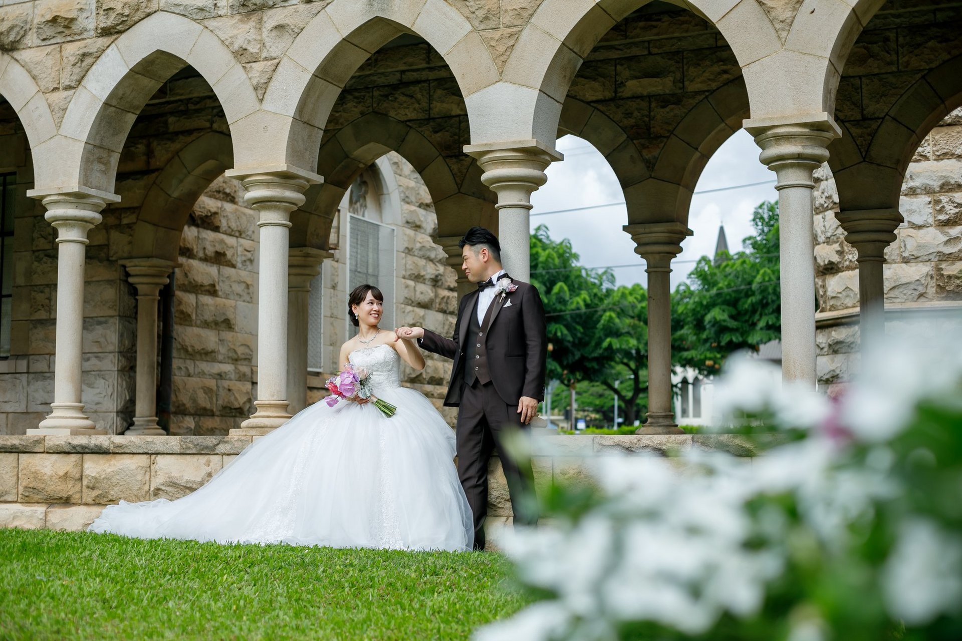 本日はハワイのセントアンドリュース大聖堂にてフォトウエディングをされた