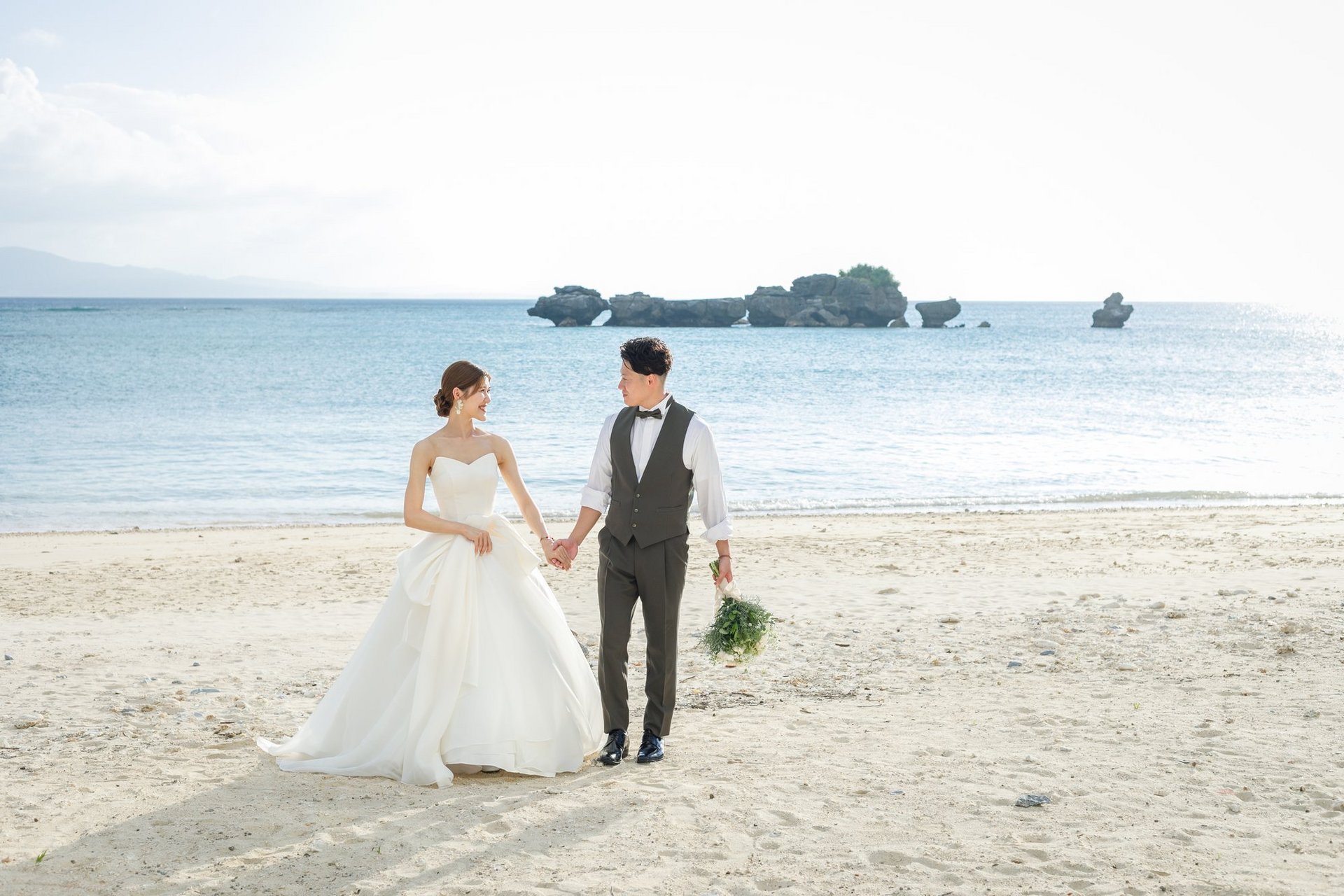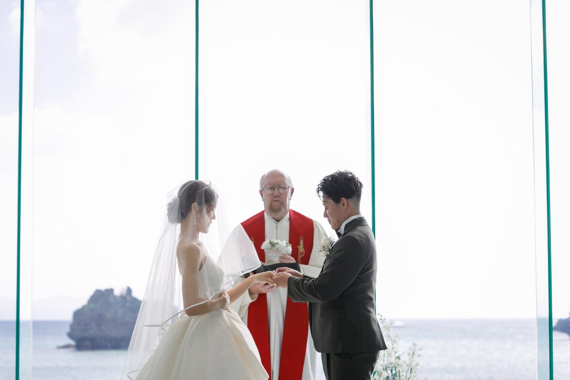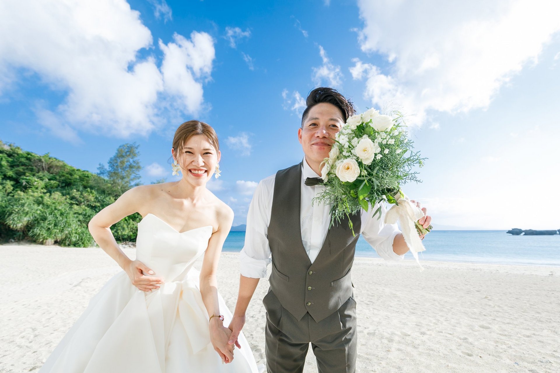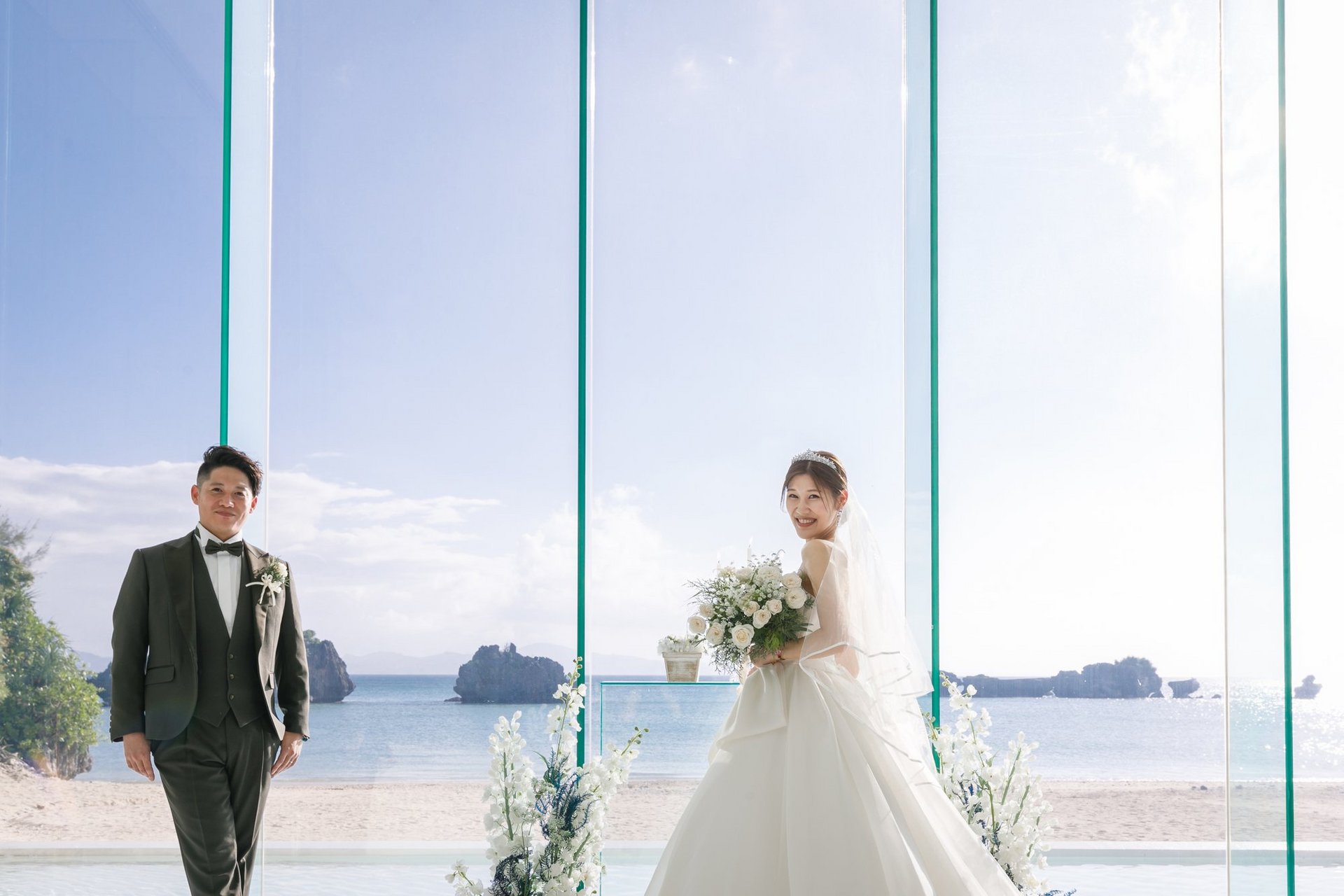 青い空と海をバックに永遠の愛を誓い合います♡
