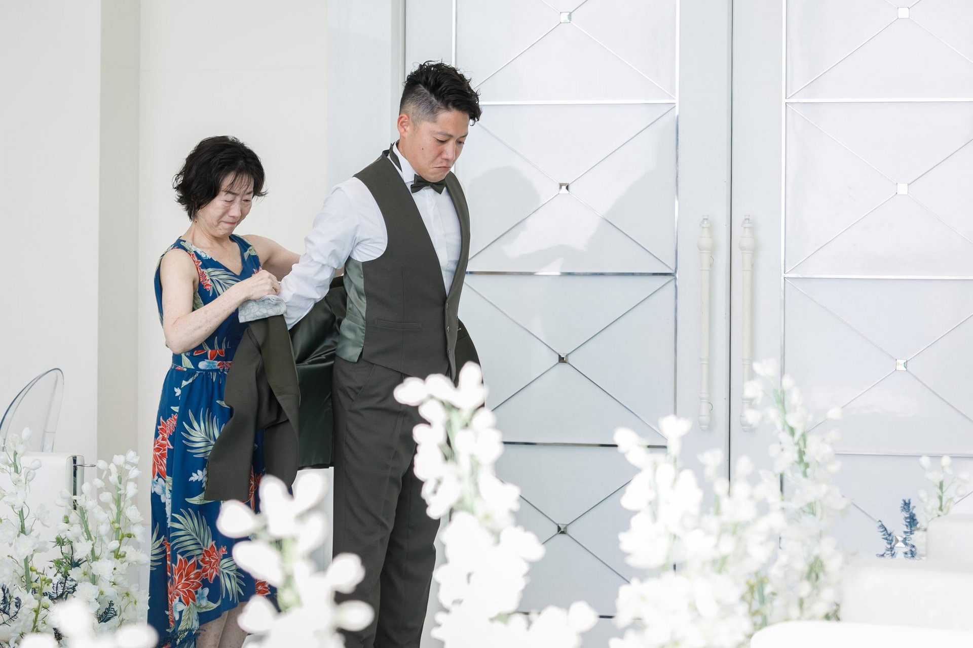 それぞれお母様より、ご新郎様はジャケットセレモニー