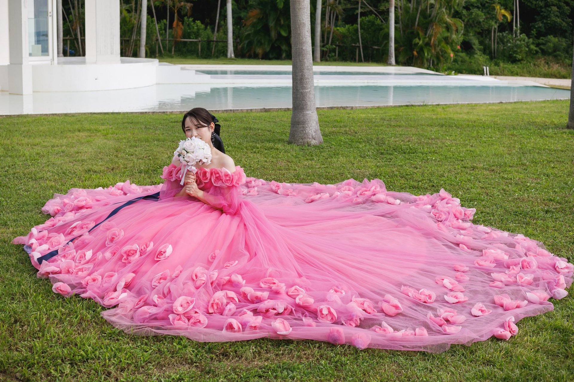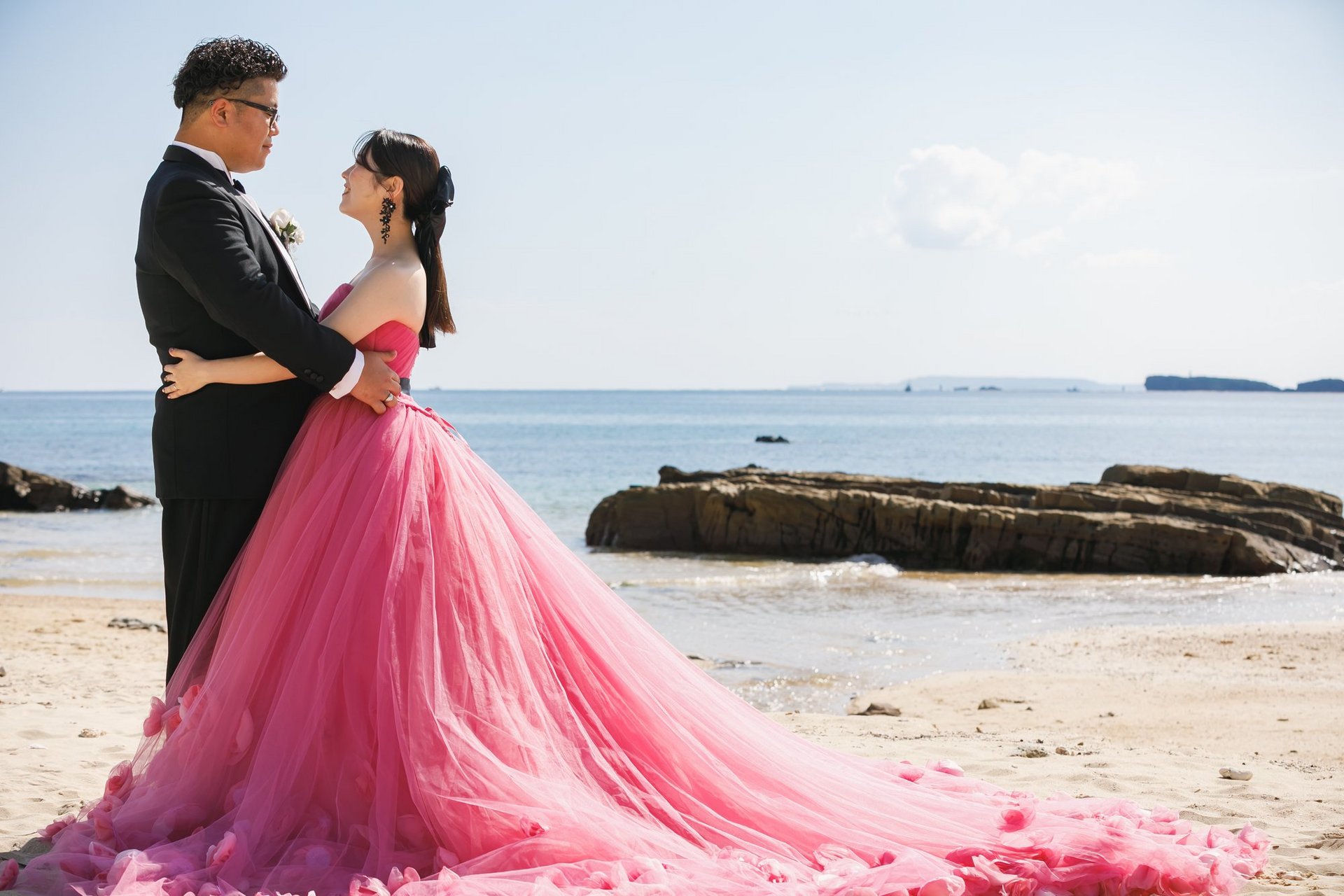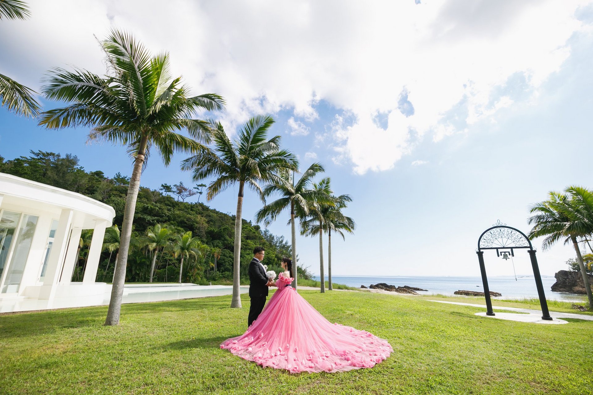 ビーチ&ガーデンではピンクのカラードレスへお色直し♪