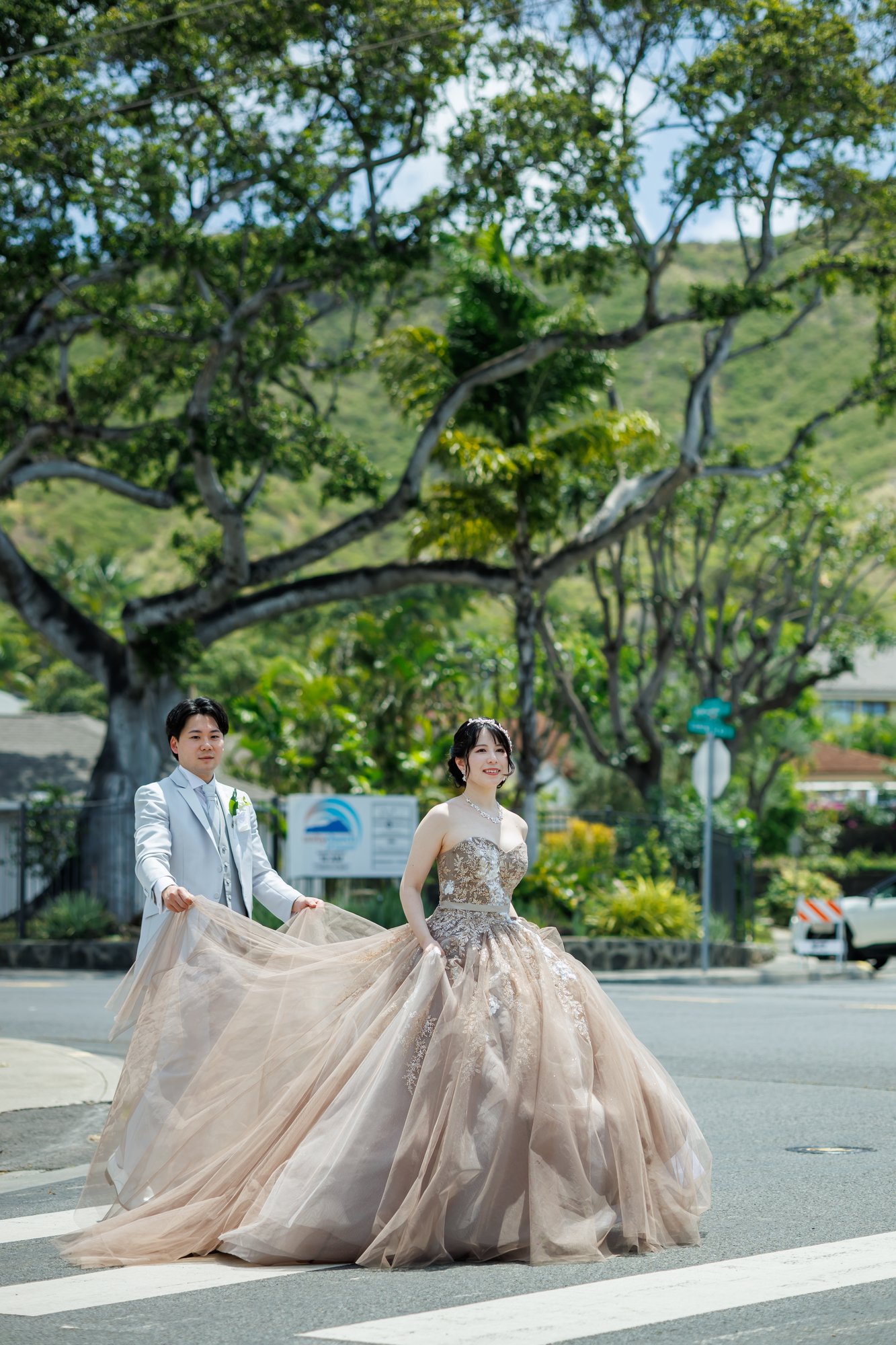 ハワイの街並みで自然を感じながらお撮影していきます!