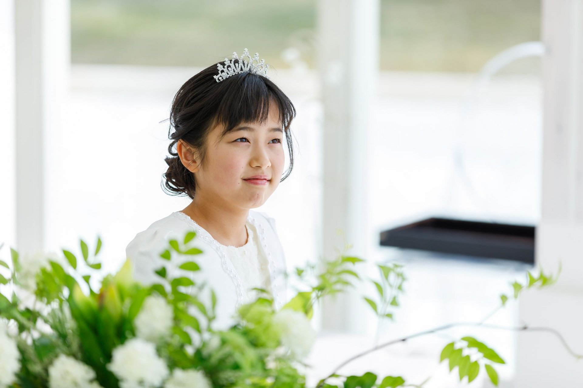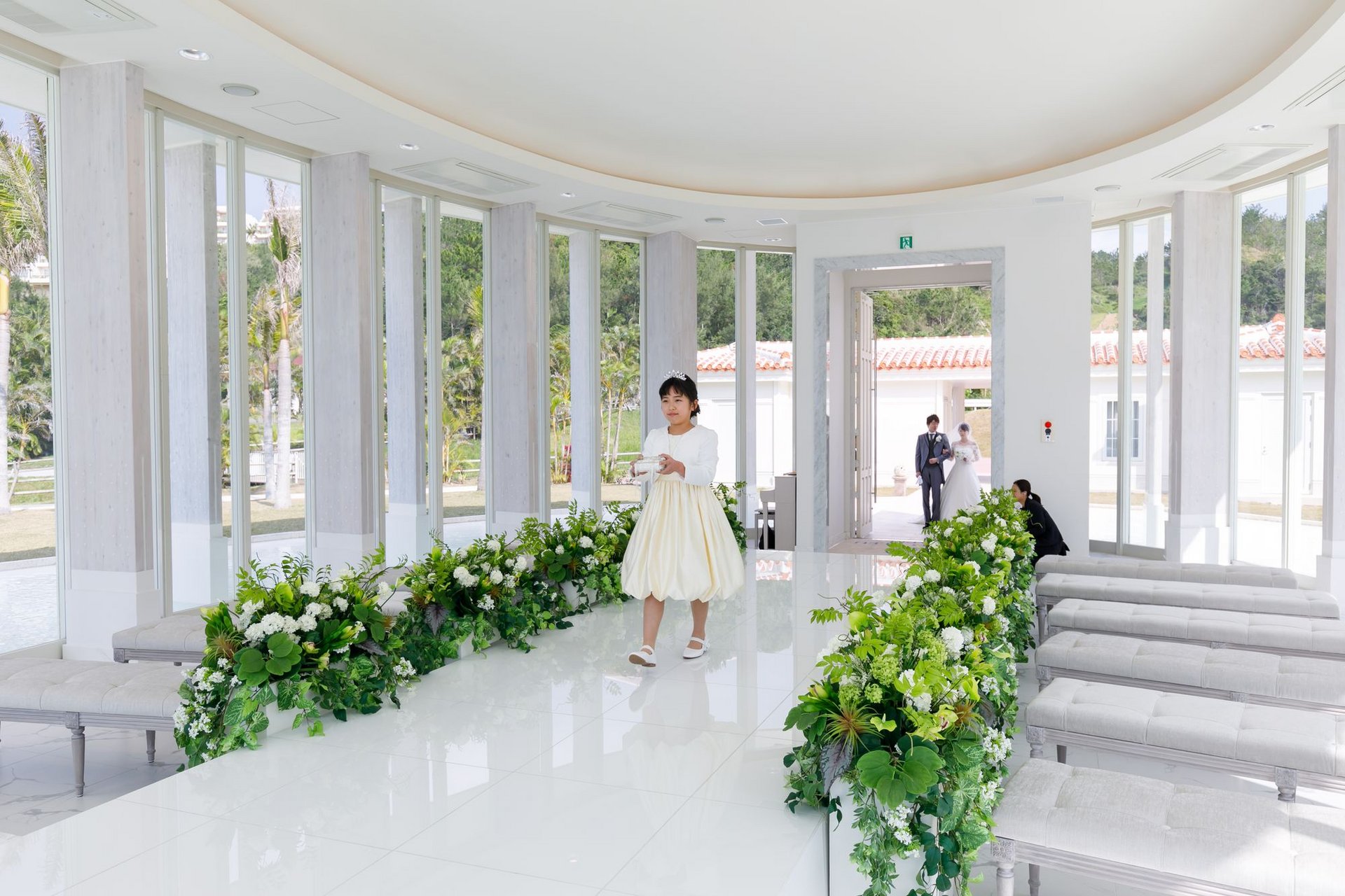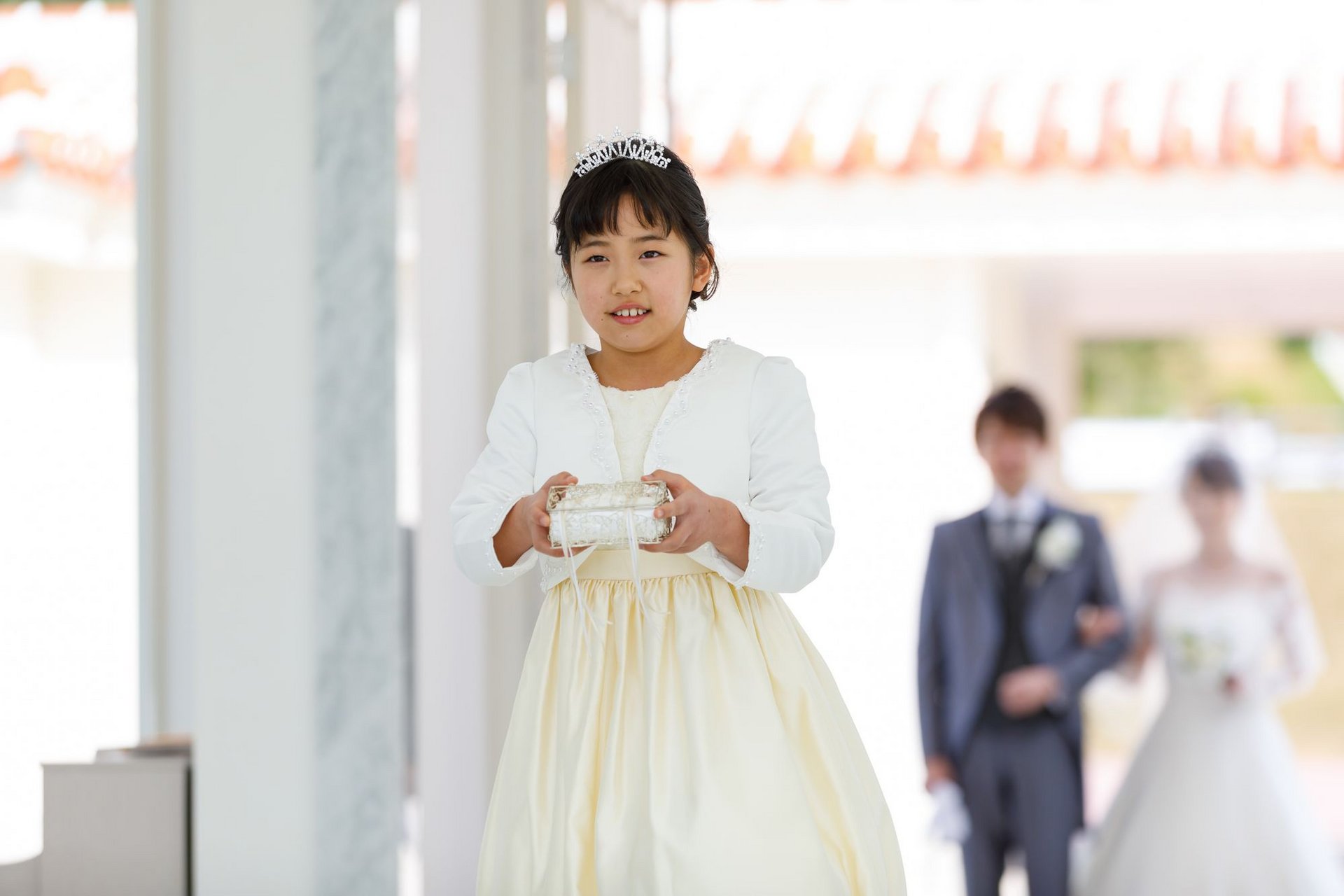 お子様のYUIちゃんに指輪を運ぶお手伝い≪リングガール≫を行って頂きました。