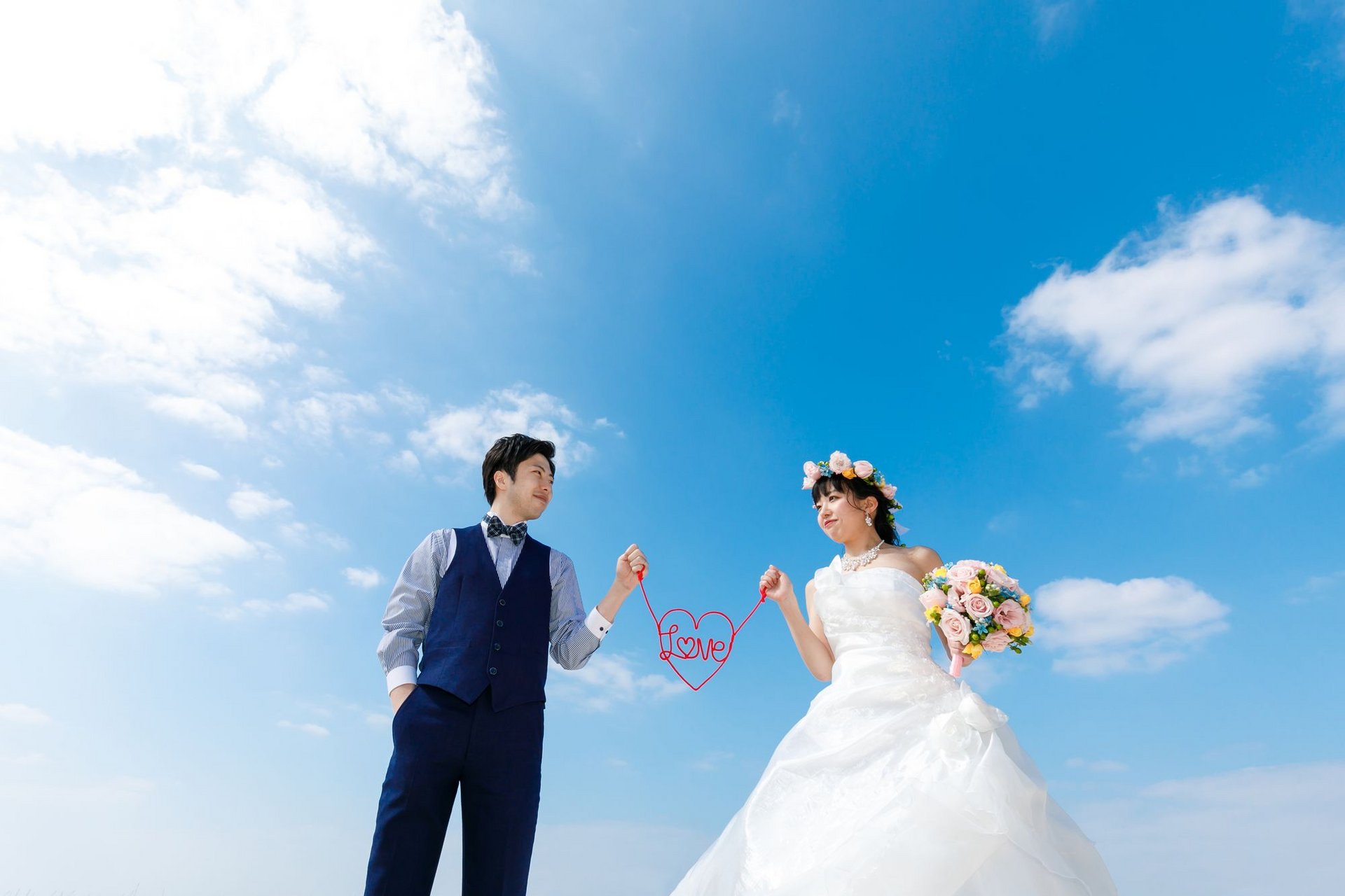 とても天気が良く、お二人の『赤い糸』がとても素敵です♪