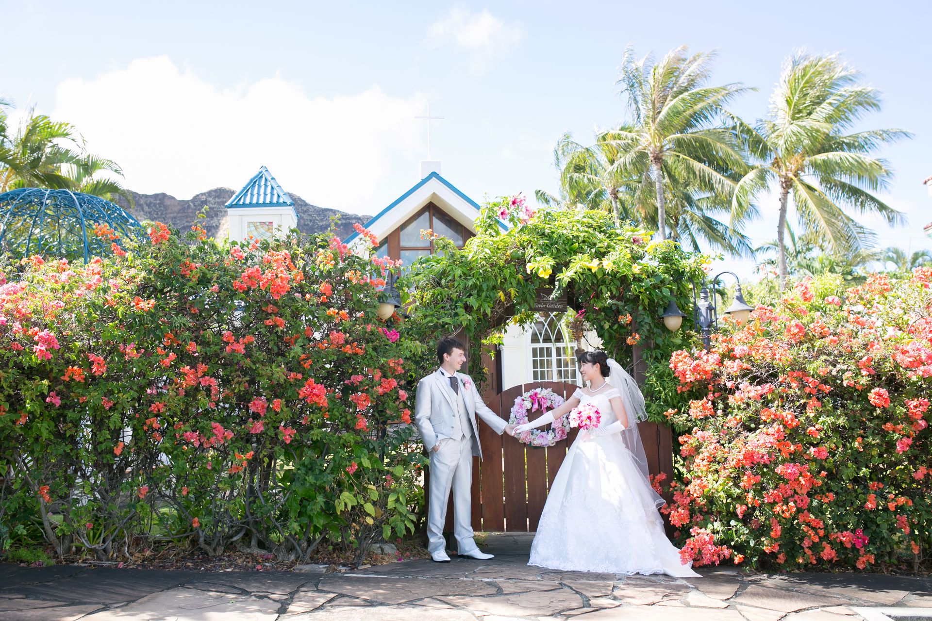 ガーデンの集合写真も、ハワイらしい青い空と広々としたガーデンに皆様が映えてとっても素敵な一枚です!