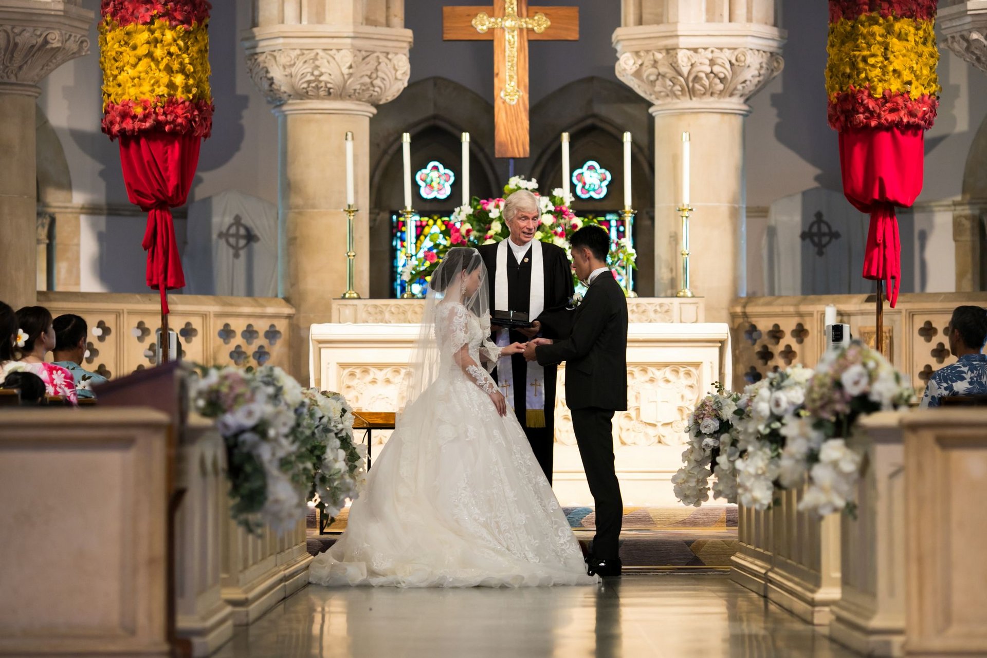 ハワイ「セントアンドリュース大聖堂」で挙式をお迎えになられました