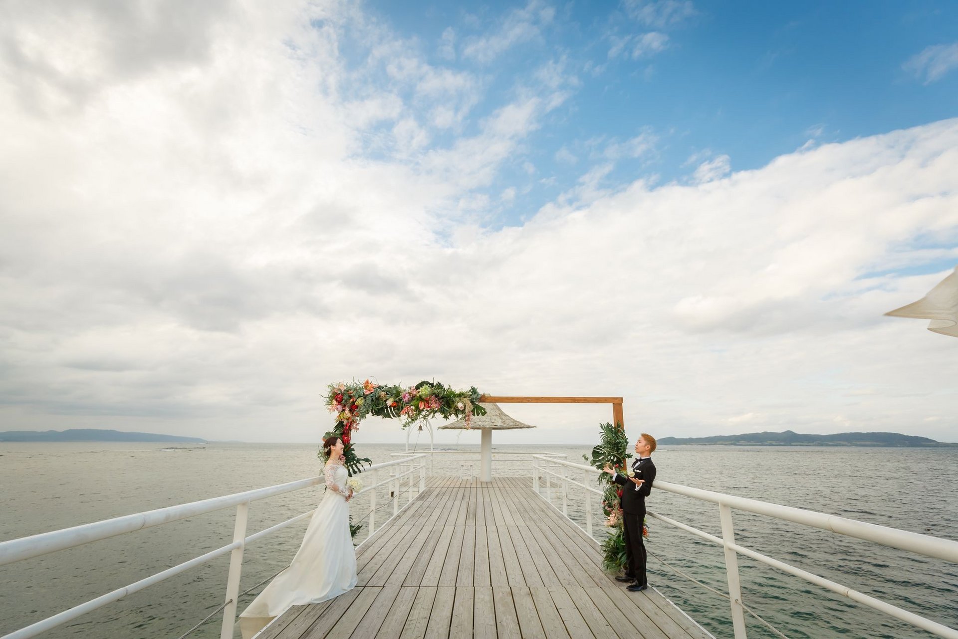 まるで海の上にいるような挙式をお過ごしいただけます♪