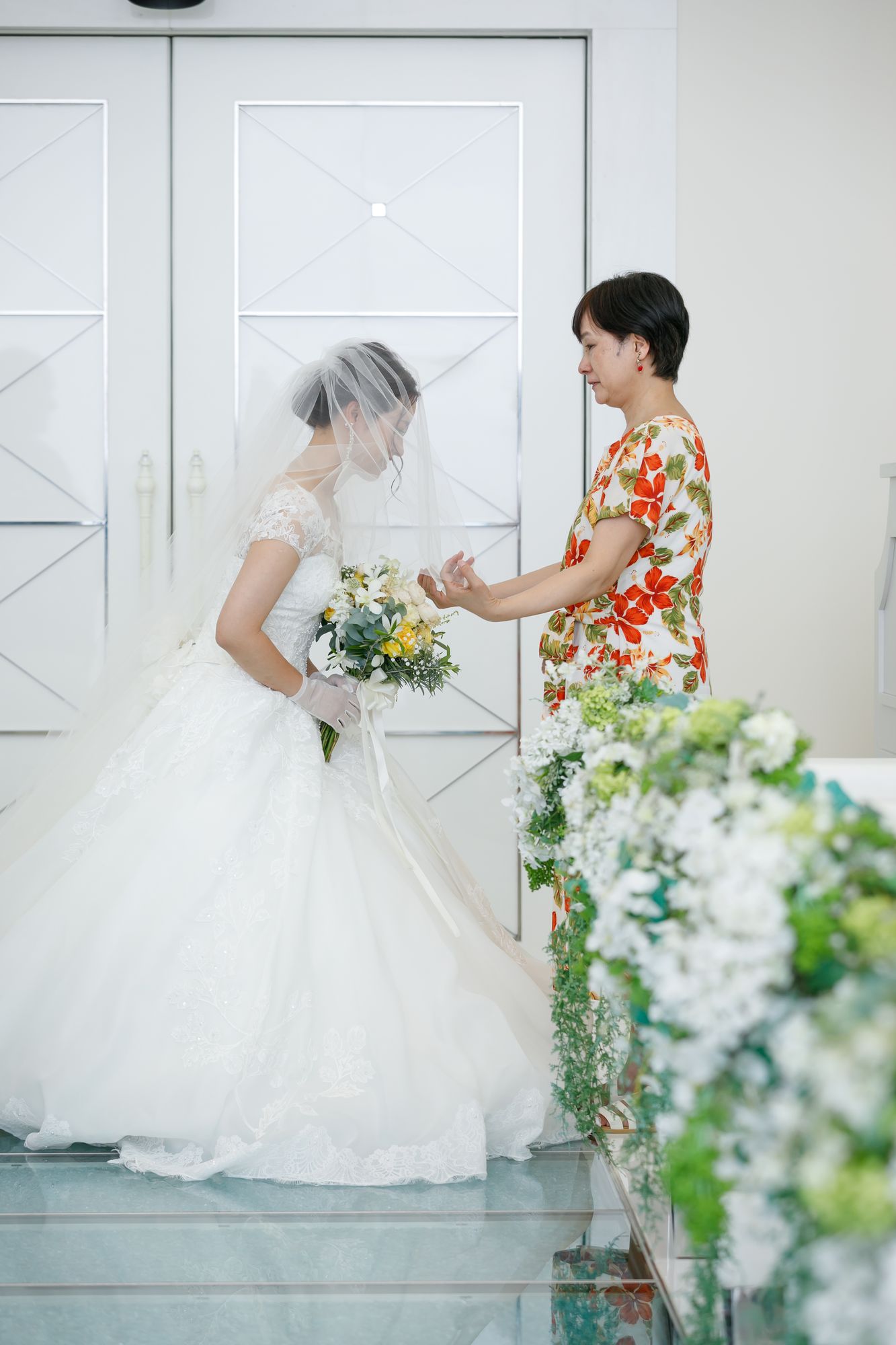 一生に一度の大切な日にお支度の最後のお手伝いを務めるお母さまは
