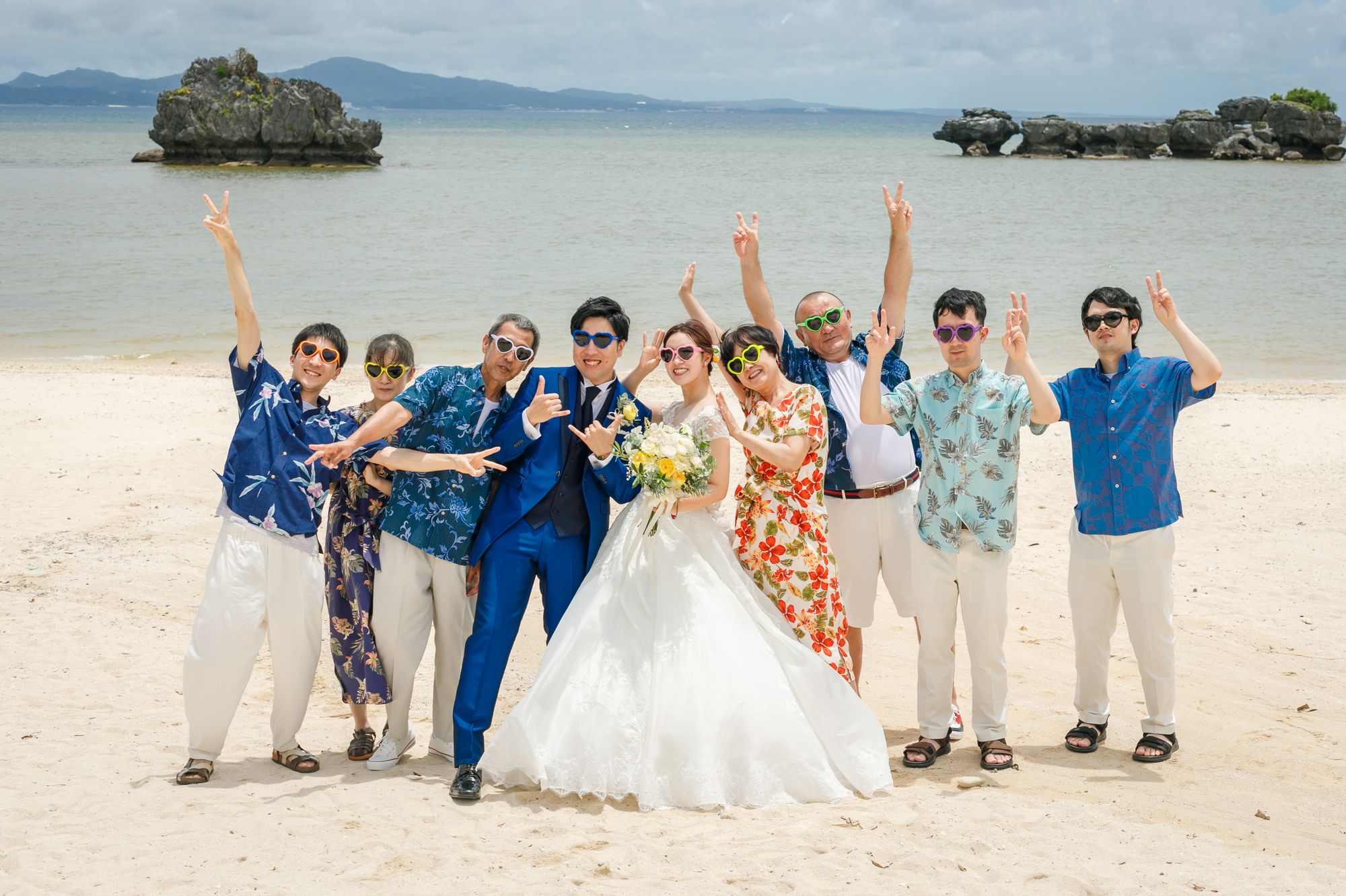 お二人がご列席の皆様分ご用意くださったハートサングラスを付けてポーズ!