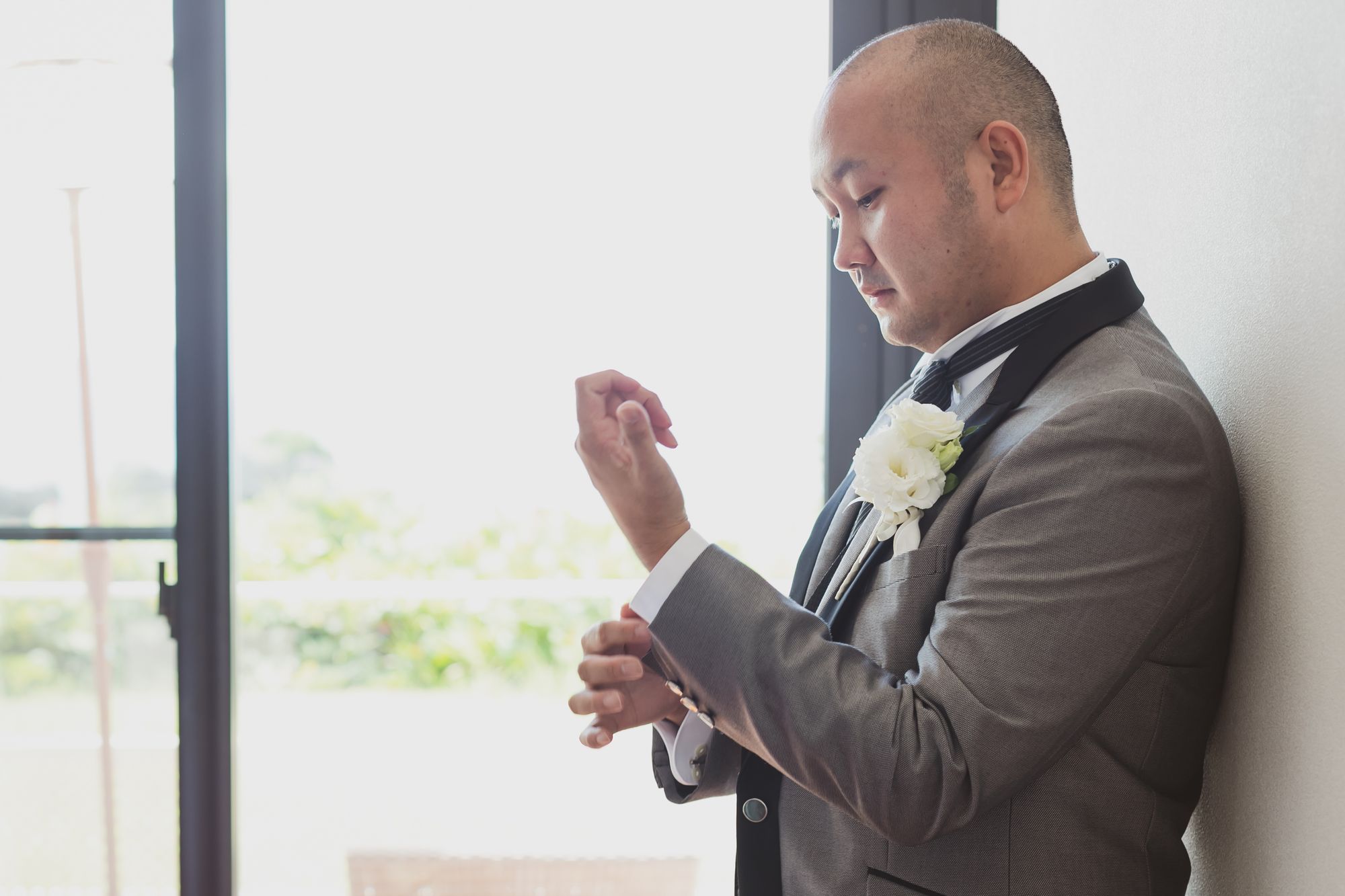 挙式前の撮影は少し緊張感が漂い、