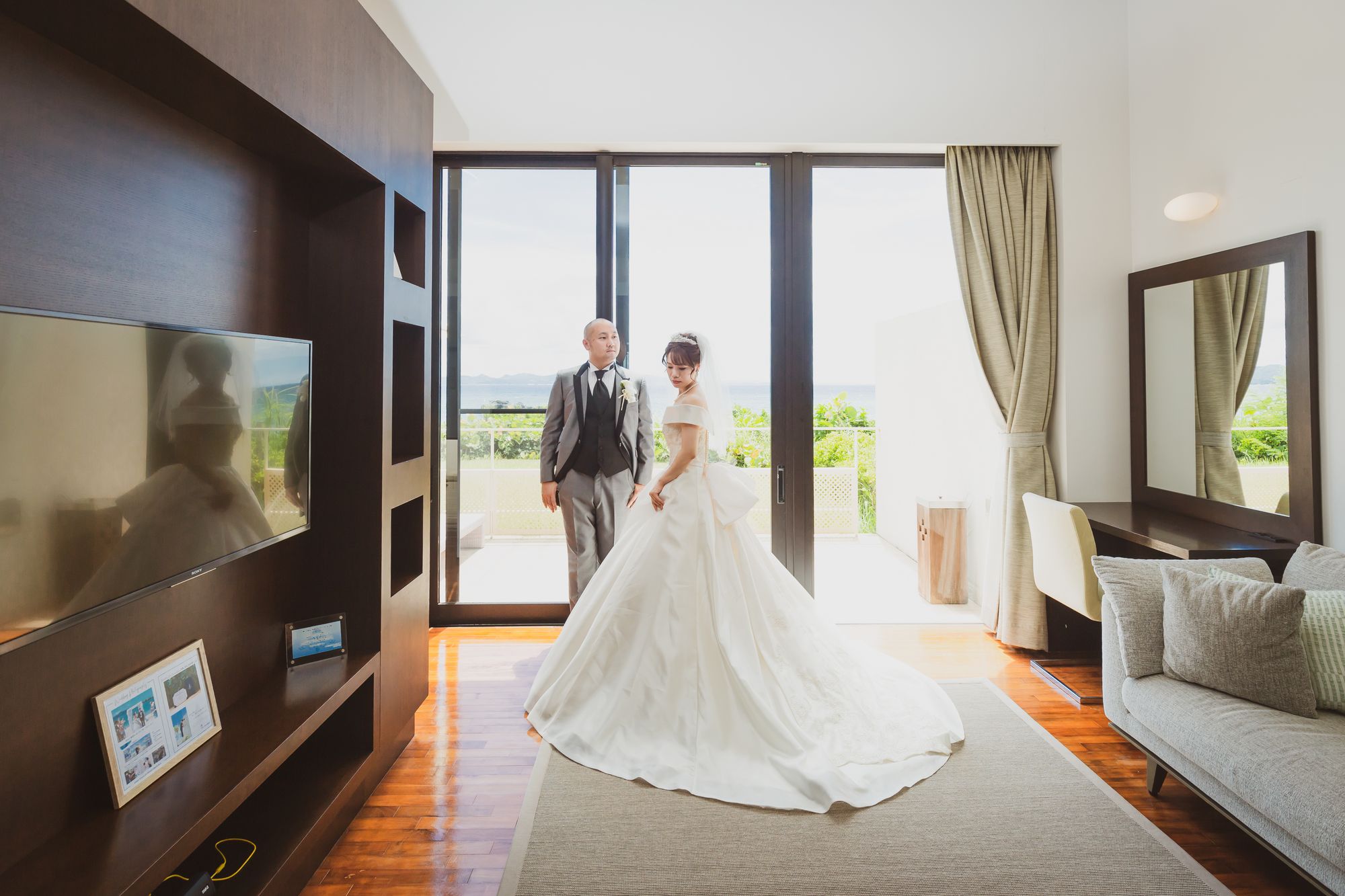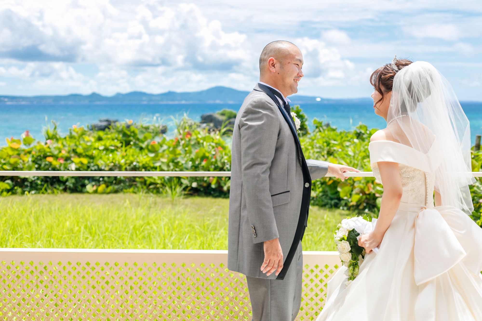 ヴィラではベランダに出て海をバックにしての撮影も可能です!