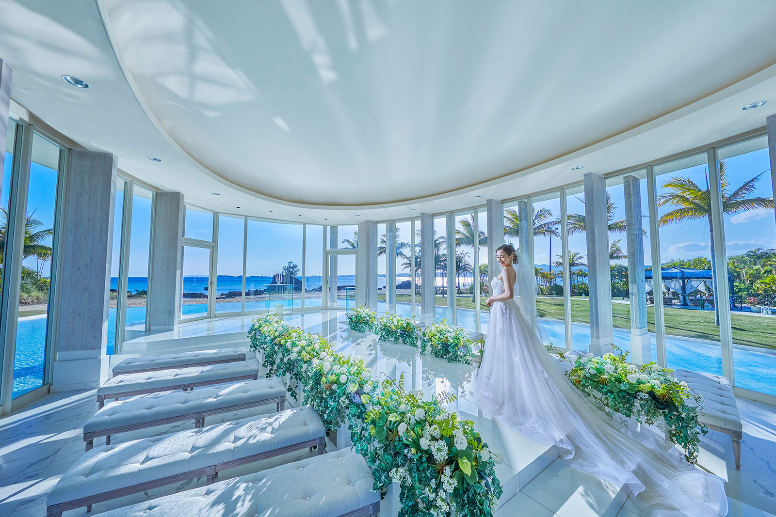360°玻璃打造的全海景教堂。新郎,新娘走在灑滿陽光的T台風格的新人之路,身姿被襯托的格外美麗。