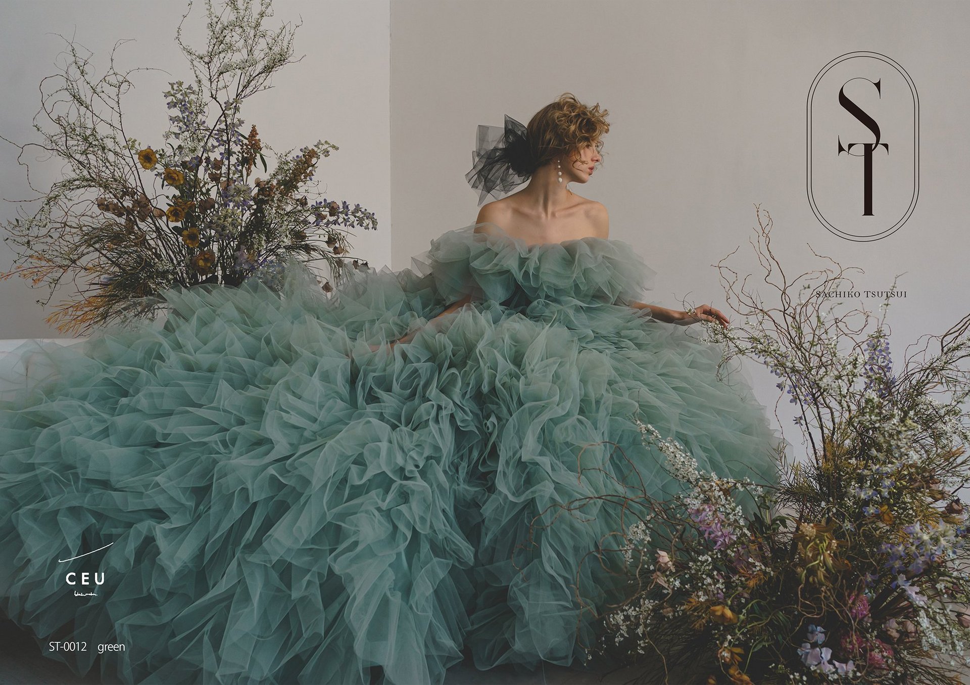デザイナーとしての想い、20 年という時のなかで培ってきた経験と技術、そして“好き”を詰め込み、作りたいものと今の花嫁が求めているもの、そのイメージを膨らませて【 SACHIKO TSUTSUI 】は作られています。