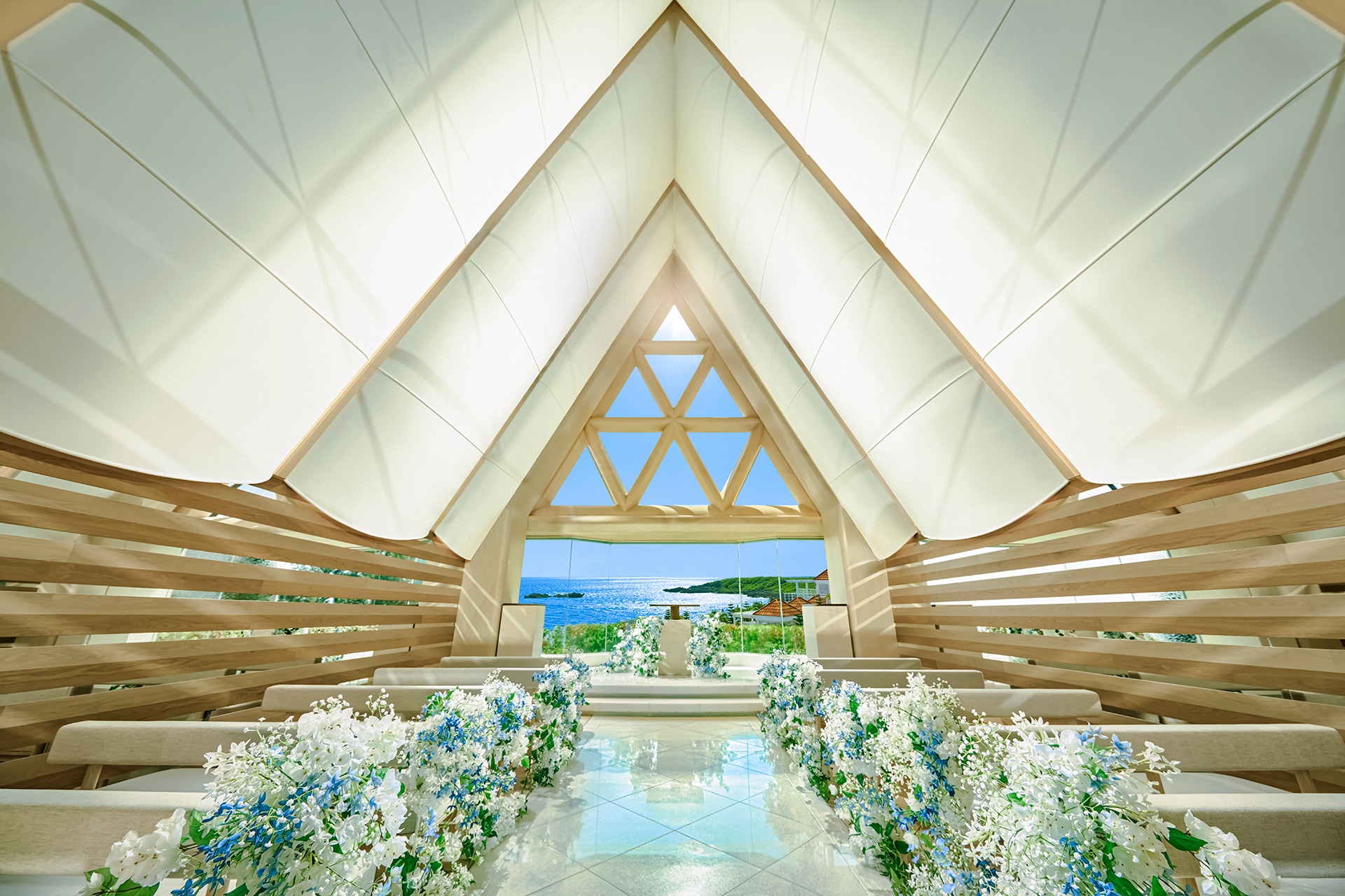 遥か大海原へと出航する船を模した独立型のチャペルが、聖なるセレモニーの舞台です。