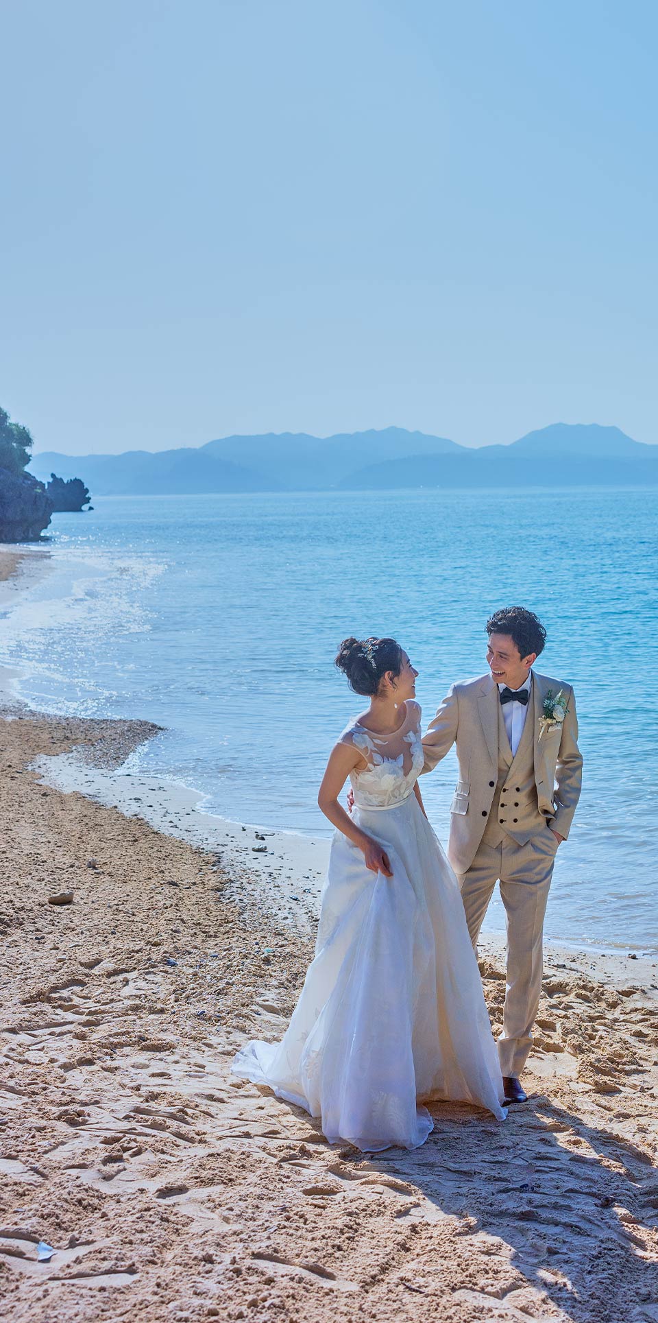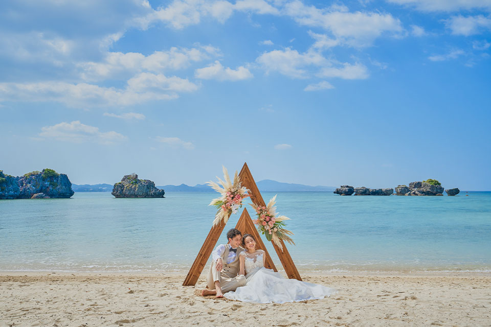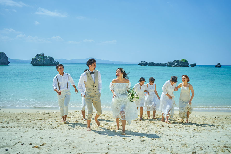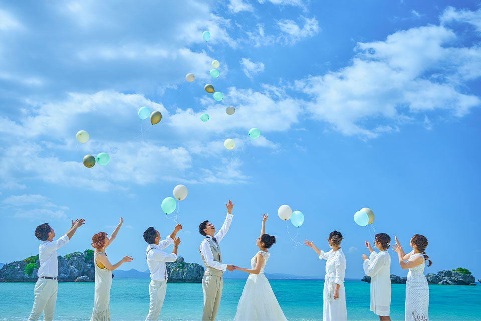 目の前に広がる海や青空のもとで祝福を受けて。