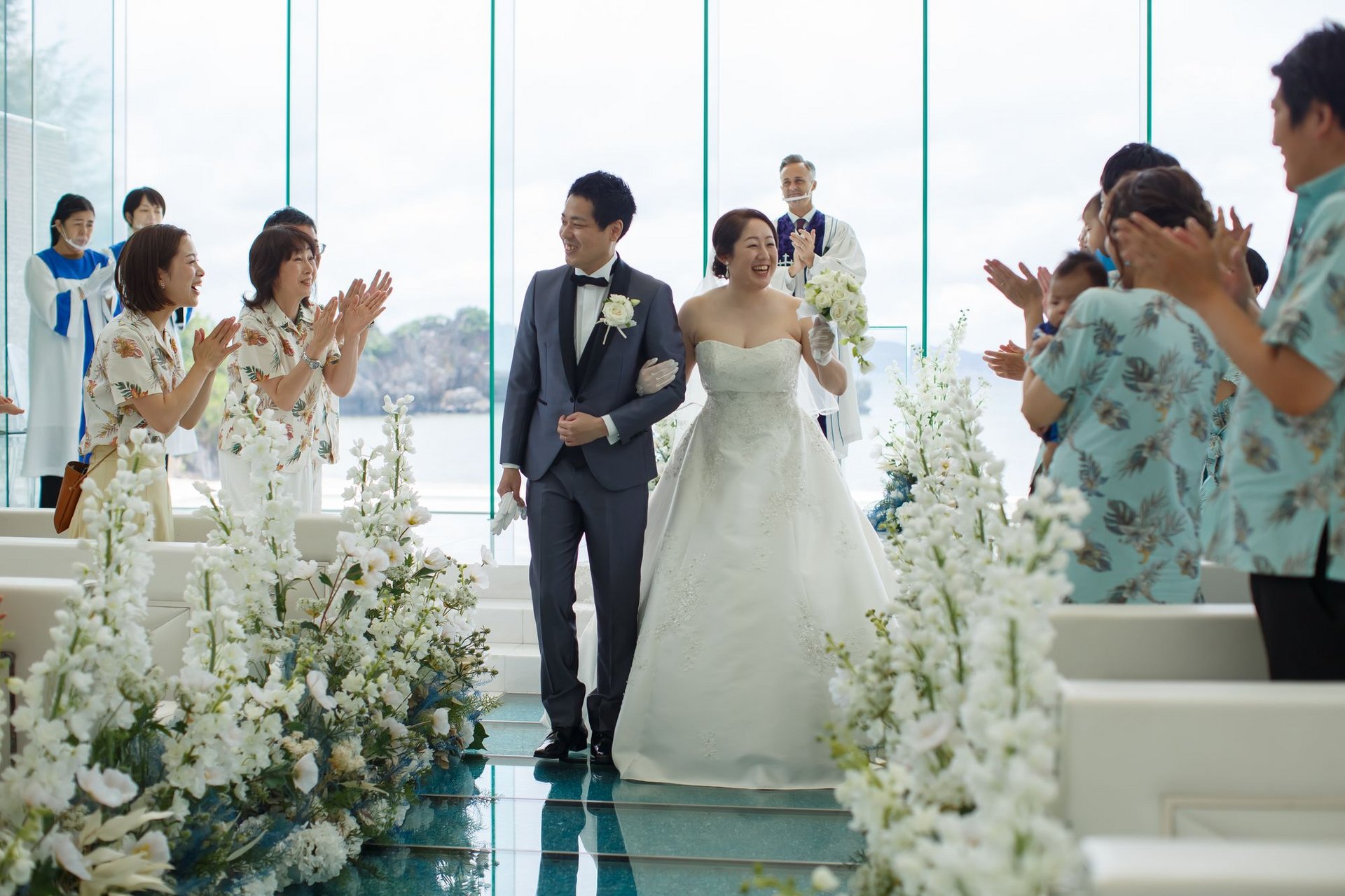 ゲストの皆様に祝福されながらチャペルからご退場ののち