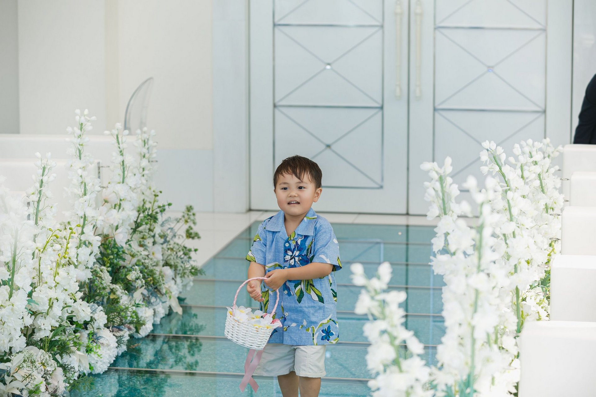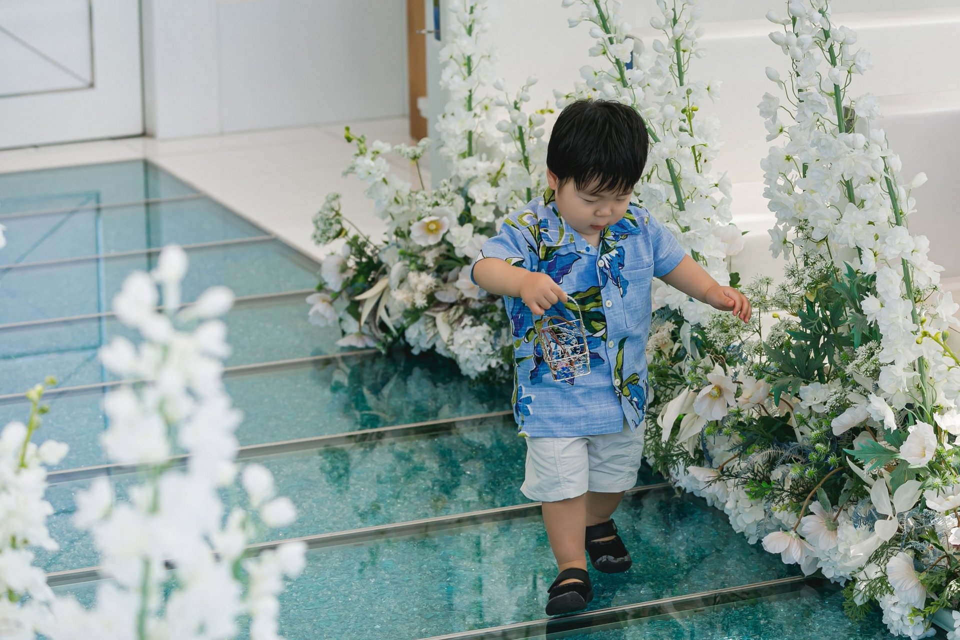 お子様にはお2人の愛の証、指輪を運んで頂く”リングボーイ”と