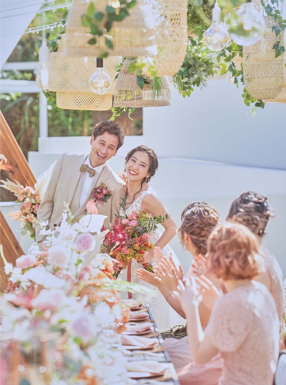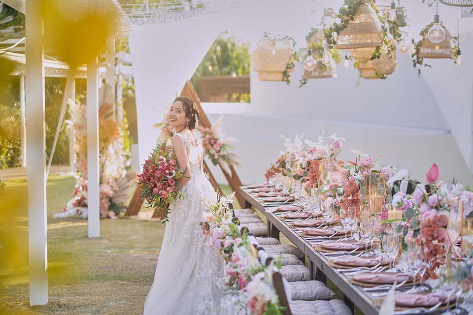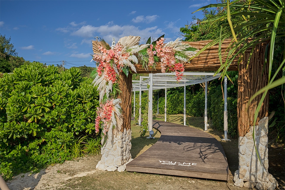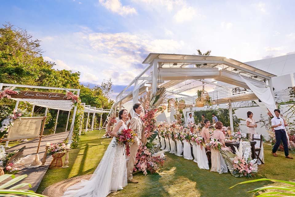 風を感じ自然の中で楽しむ、お洒落な海外ウエディングのような空間は、アイネス ヴィラノッツェ 沖縄ならではの新しいスタイル。