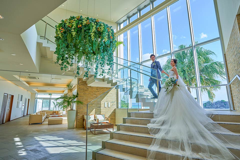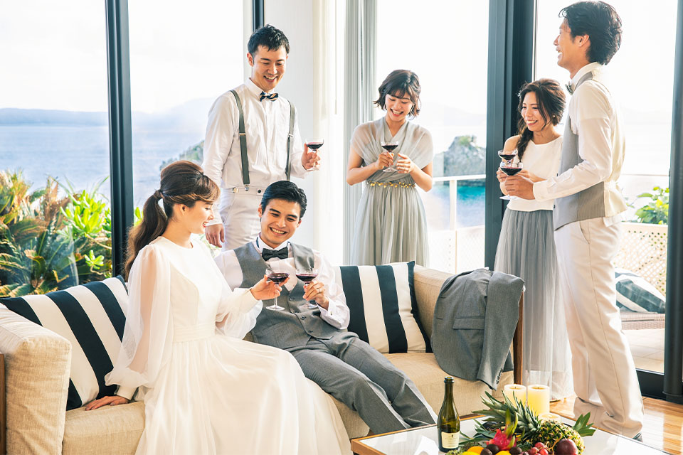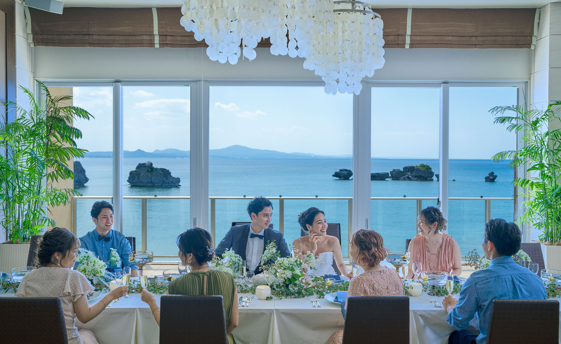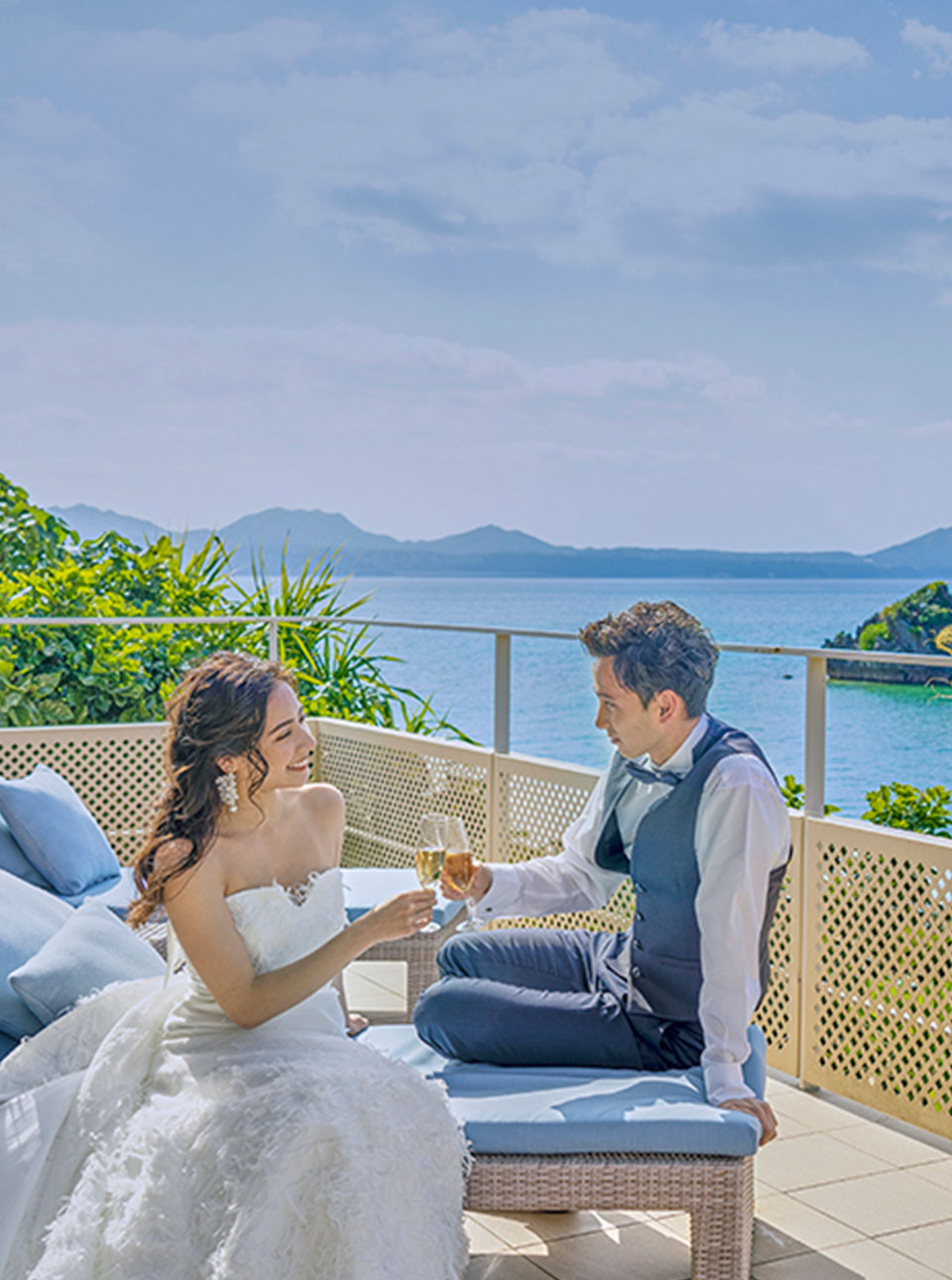 風を感じ自然の中で楽しむ、お洒落な海外ウエディングのような空間は、アイネス ヴィラノッツェ 沖縄ならではの新しいスタイル。