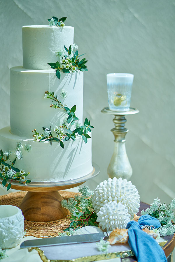 リゾートらしい色鮮やかなウエディングケーキで、ゲストにしあわせのお裾分けを。人数に合わせたご注文が可能です。ケーキカット、そしてファーストバイトでシャッターチャンスの演出を。