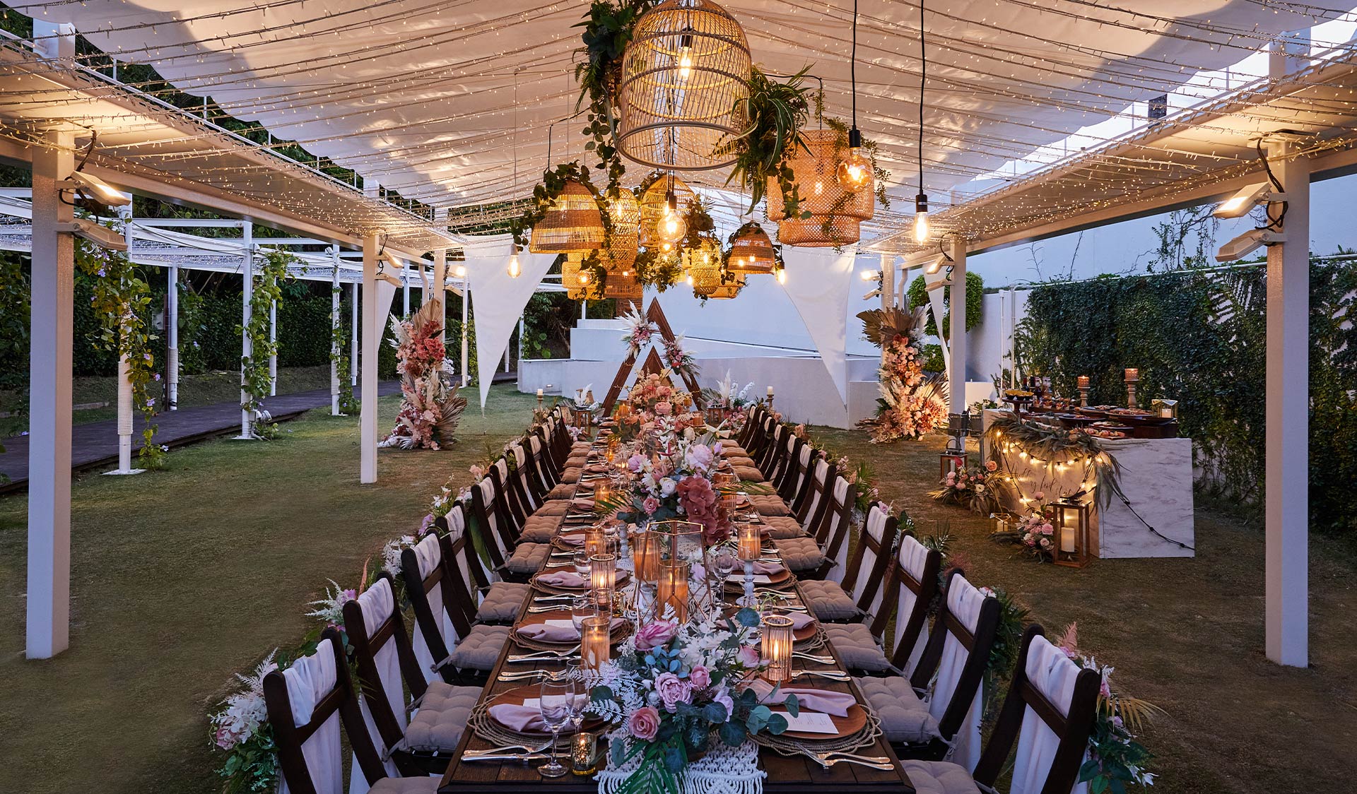 ムービングルーフテントを設置し、天候に左右されない多彩なパーティースタイルを実現!
