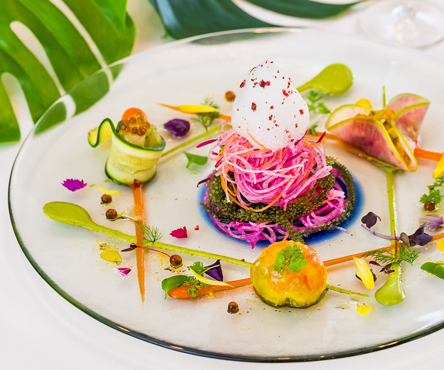 お二人の大切なゲストへの感謝の気持ちを伝えることができる一つのアイテムが料理。老若男女の方々にご堪能いただけるように、一人ひとりの席に箸を添えてコース料理を召し上がっていただけるように配慮しております。色鮮やかなオリジナル料理と快適な空間とサービスでお二人とそしてゲストの方々をおもてなしいたします。