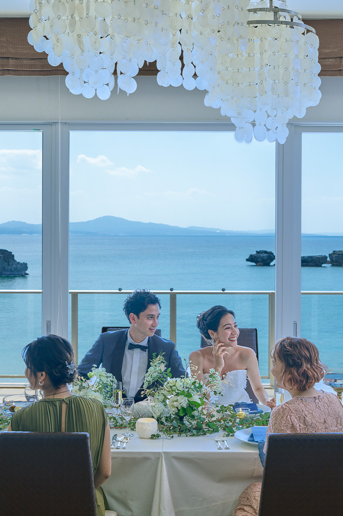お二人の大切なゲストへの感謝の気持ちを伝えることができる一つのアイテムが料理。老若男女の方々にご堪能いただけるように、一人ひとりの席に箸を添えてコース料理を召し上がっていただけるように配慮しております。色鮮やかなオリジナル料理と快適な空間とサービスでお二人とそしてゲストの方々をおもてなしいたします。