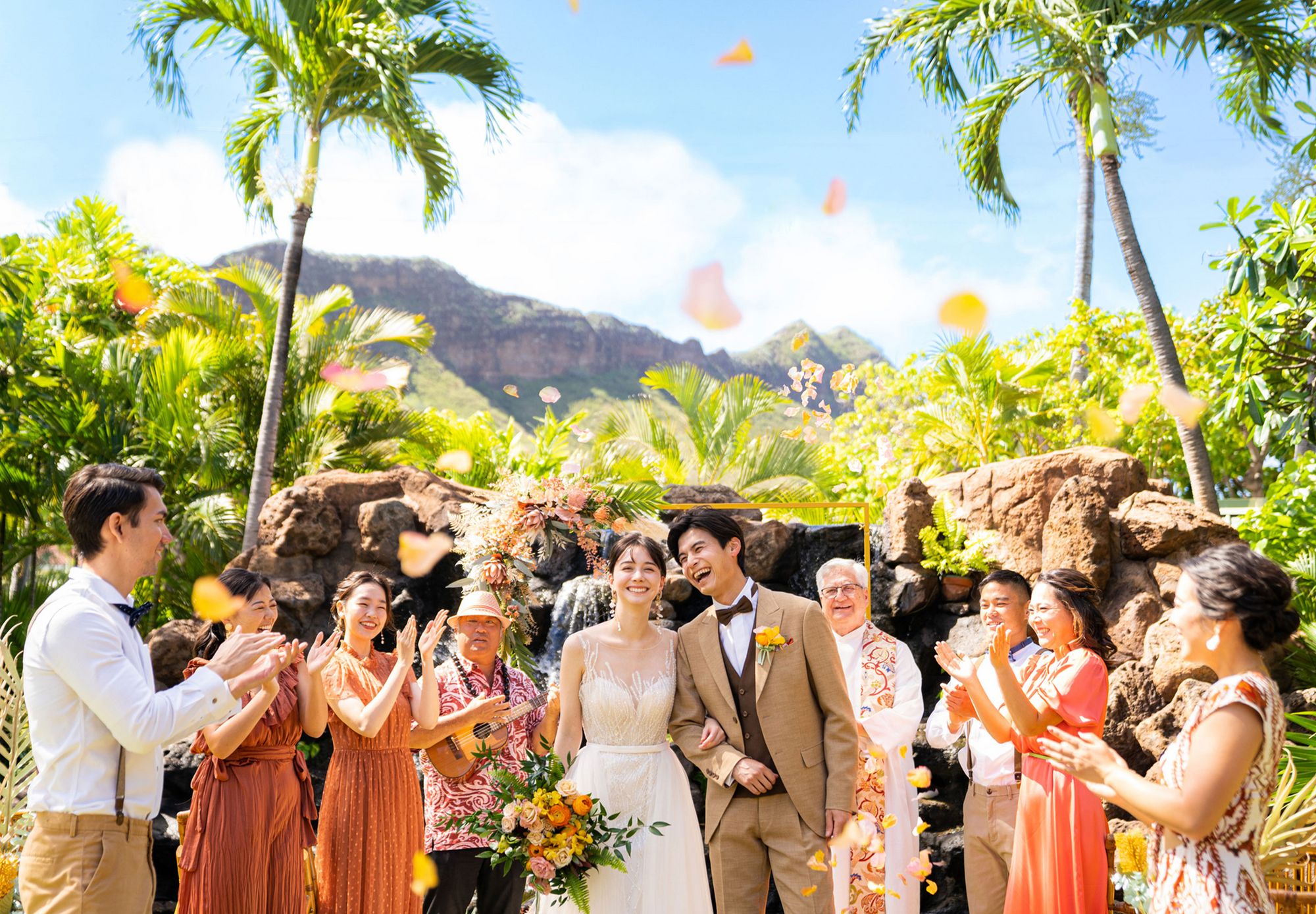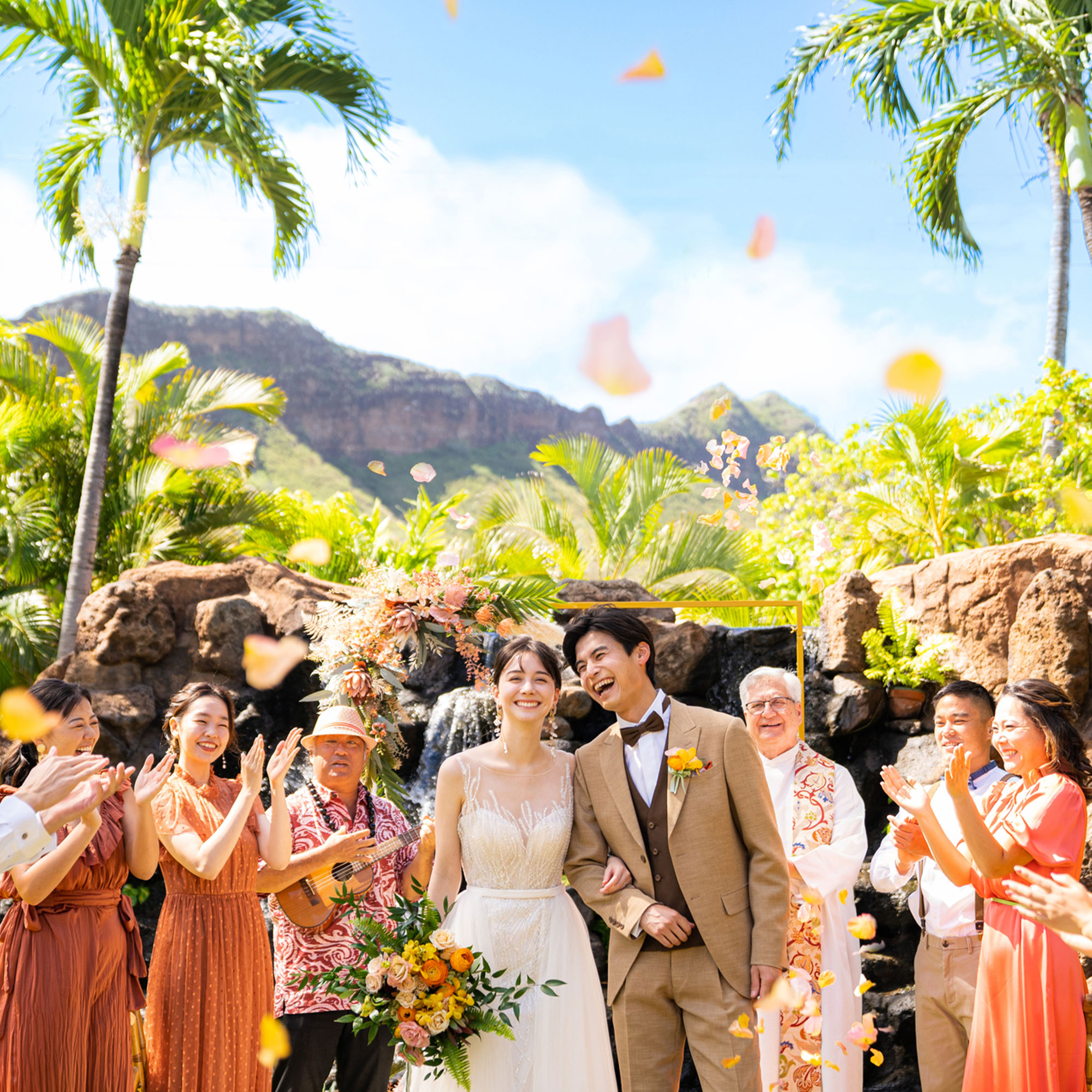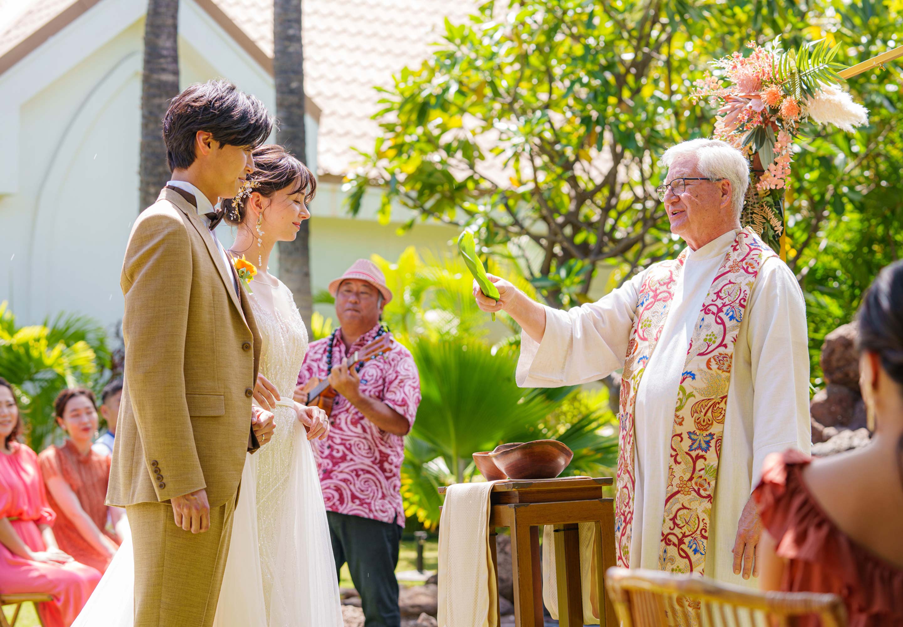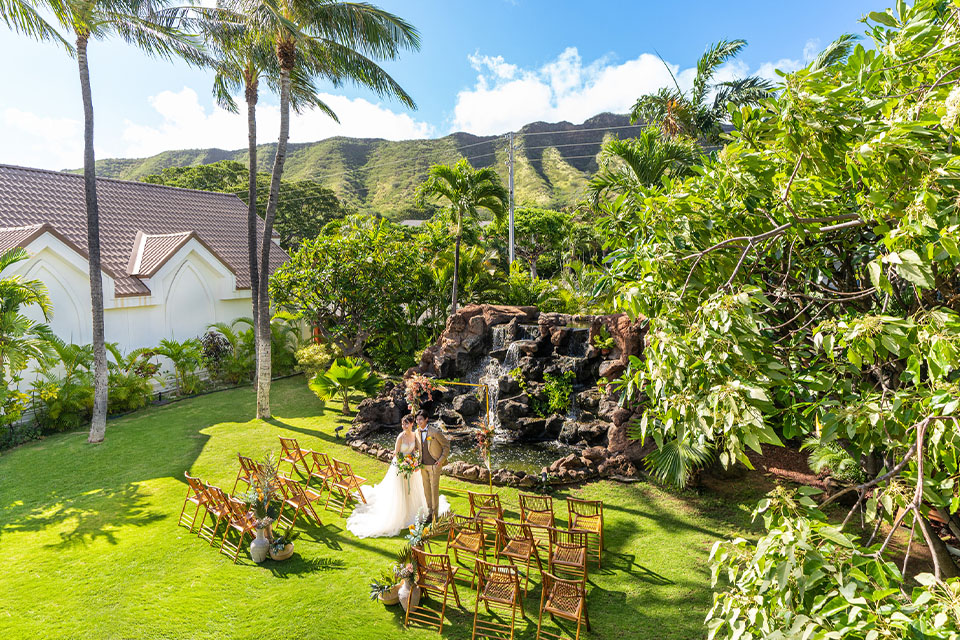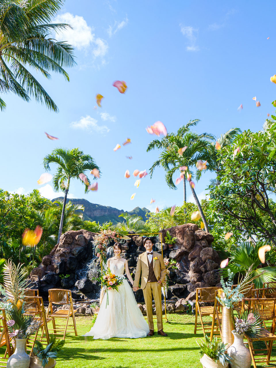 そんな清らかな水に見守られて愛を誓うセレモニーはとてもナチュラルでスピリチュアル。